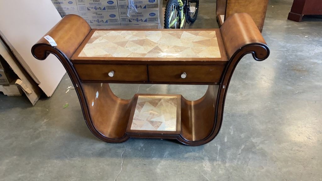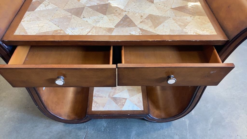 VINTAGE ART DECO INLAID SOFA TABLE WITH 2 DRAWERS