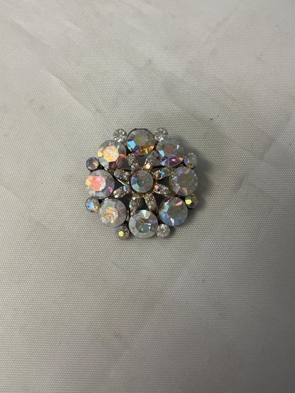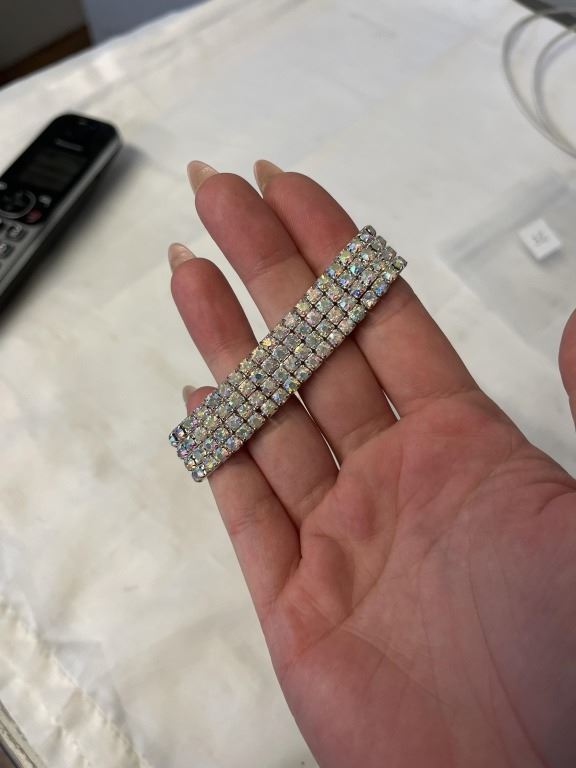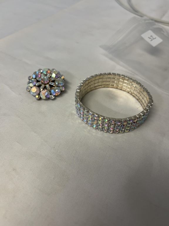 VINTAGE AURORA BOREALIS RHINESTONES STRETCH BRACELET AND BROOCH