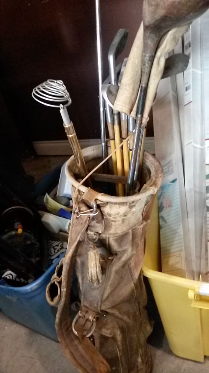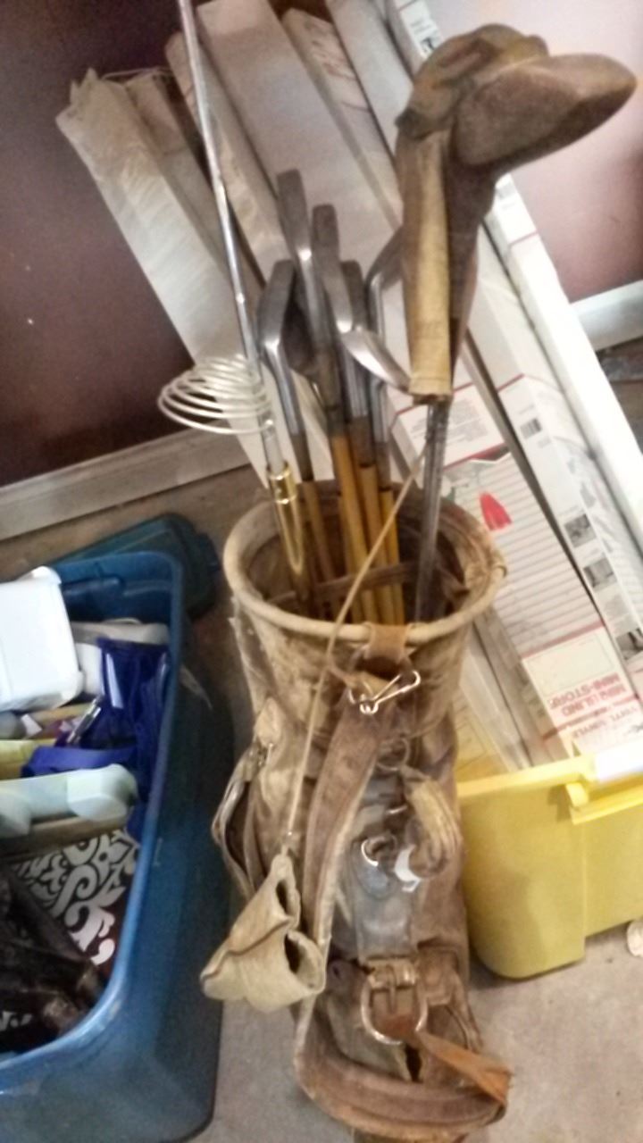 VINTAGE BAMBOO GOLF CLUBS IN BAG