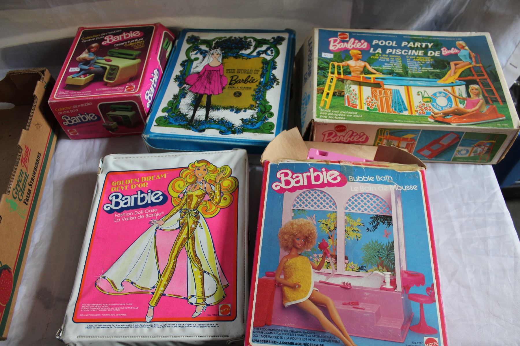 VINTAGE BARBIE TOYS IN BOX AND TWO BARBIE CASES