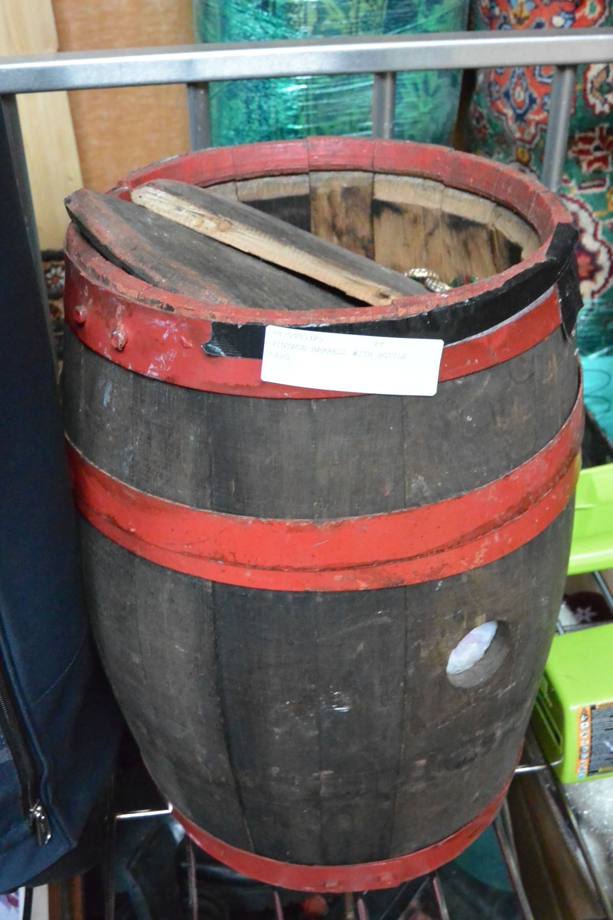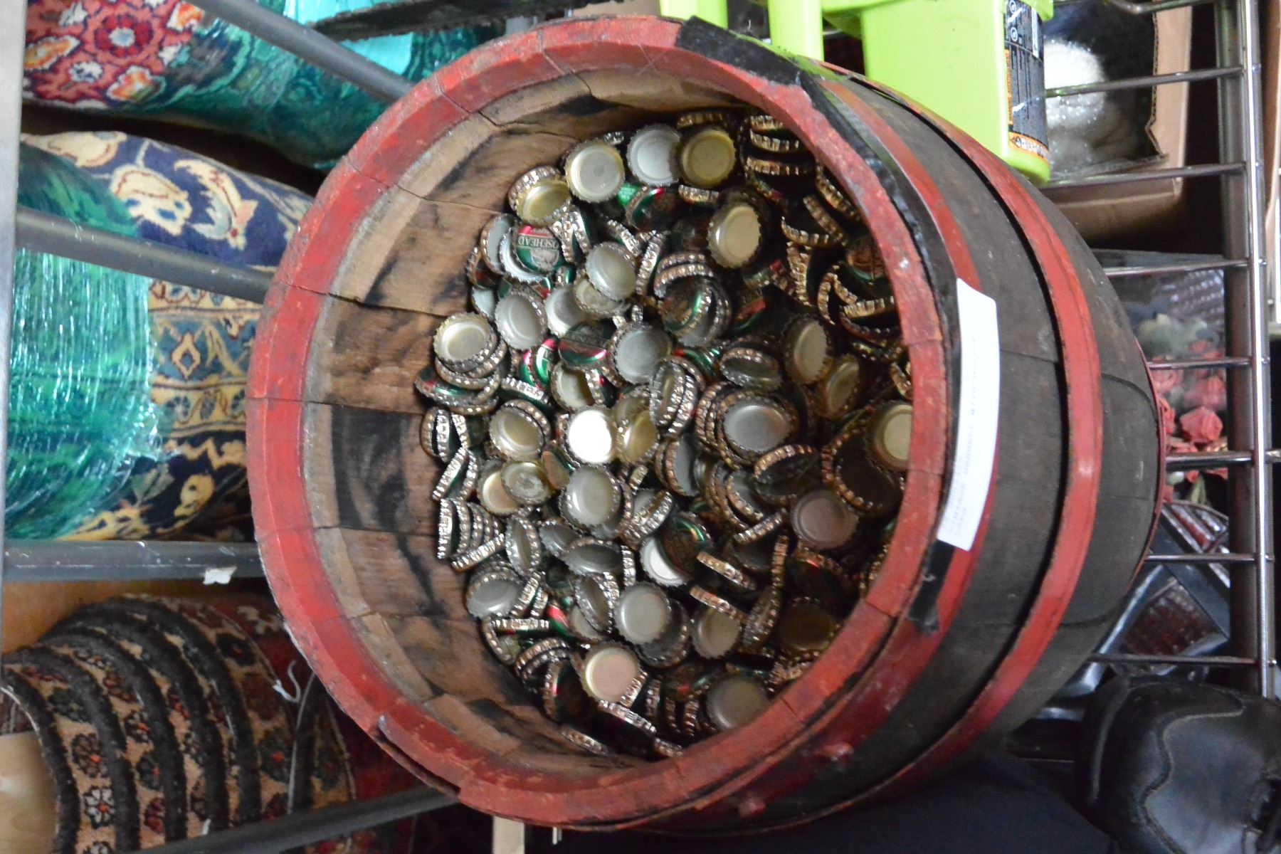 VINTAGE BARRELL WITH BOTTLE CAPS