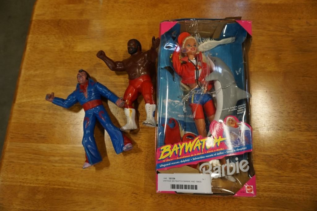 VINTAGE BAYWATCH BARBIE AND 1880S WRESTLERS