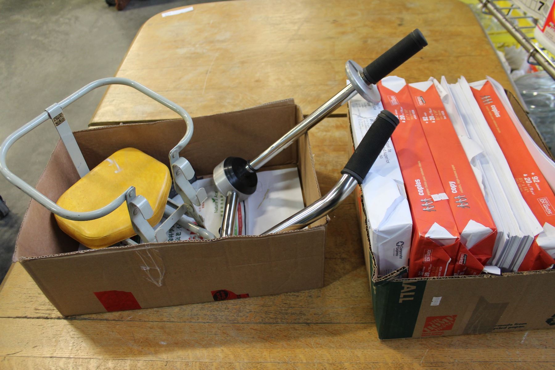 VINTAGE BIKE PASSENGER SEAT AND STRETCH WRAP HANDLE AND NEW OFFICE PAPER