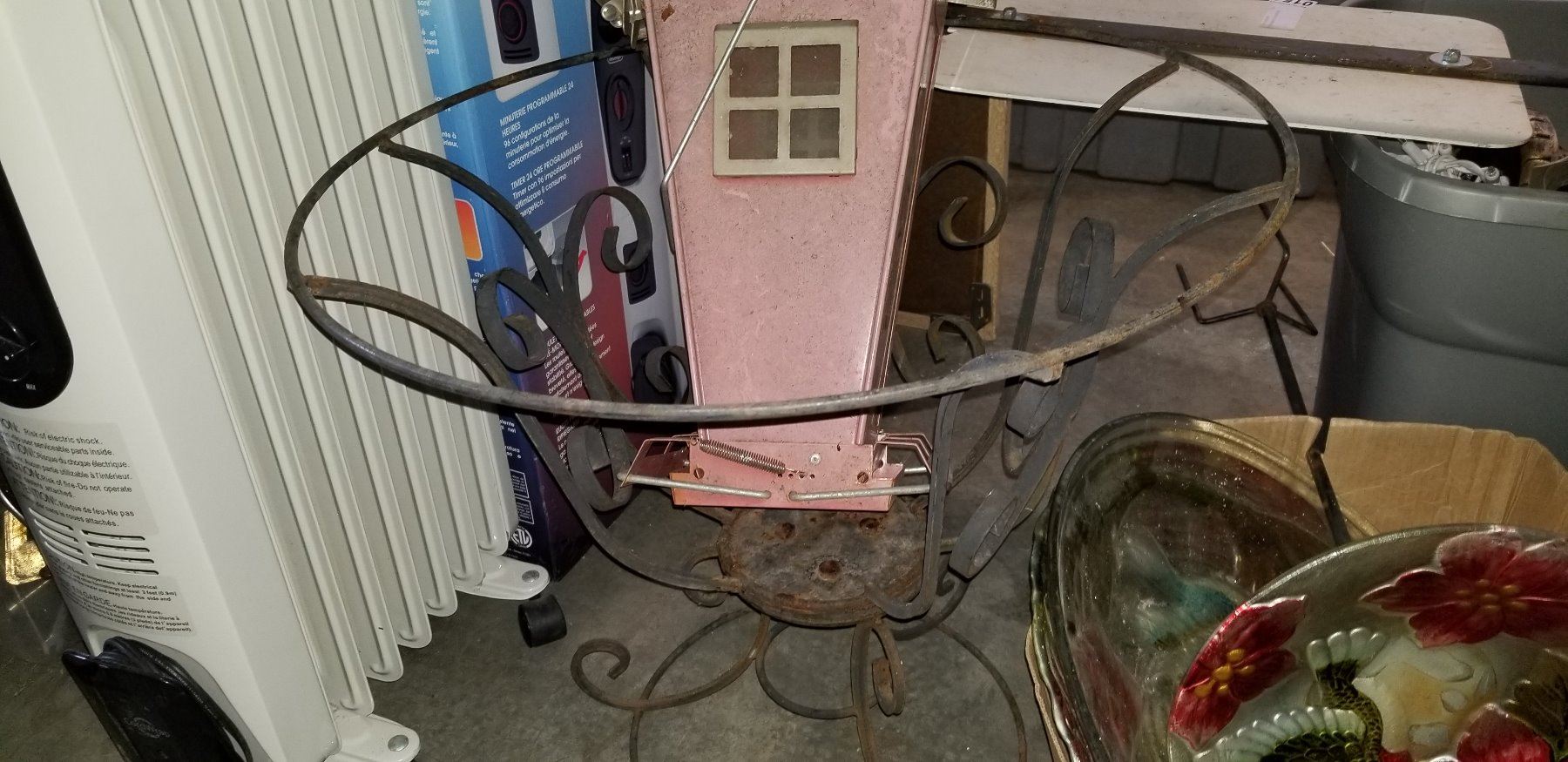 VINTAGE BIRDHOUSE AND METAL OUTDOOR PLANTER