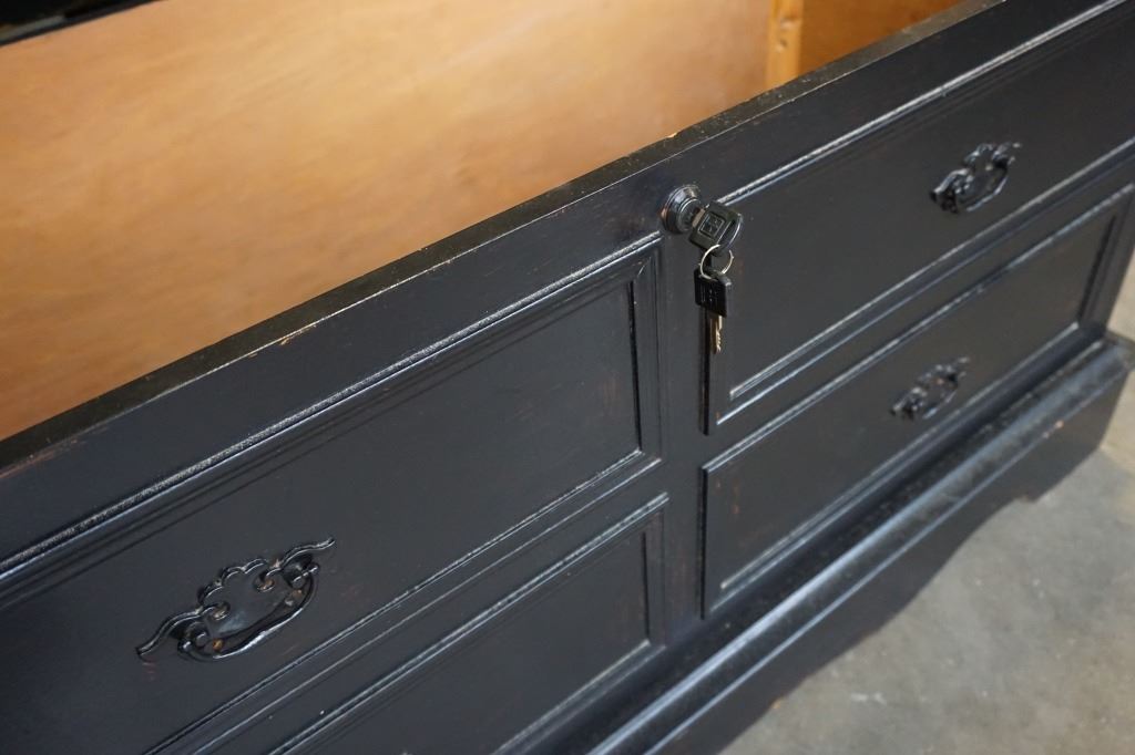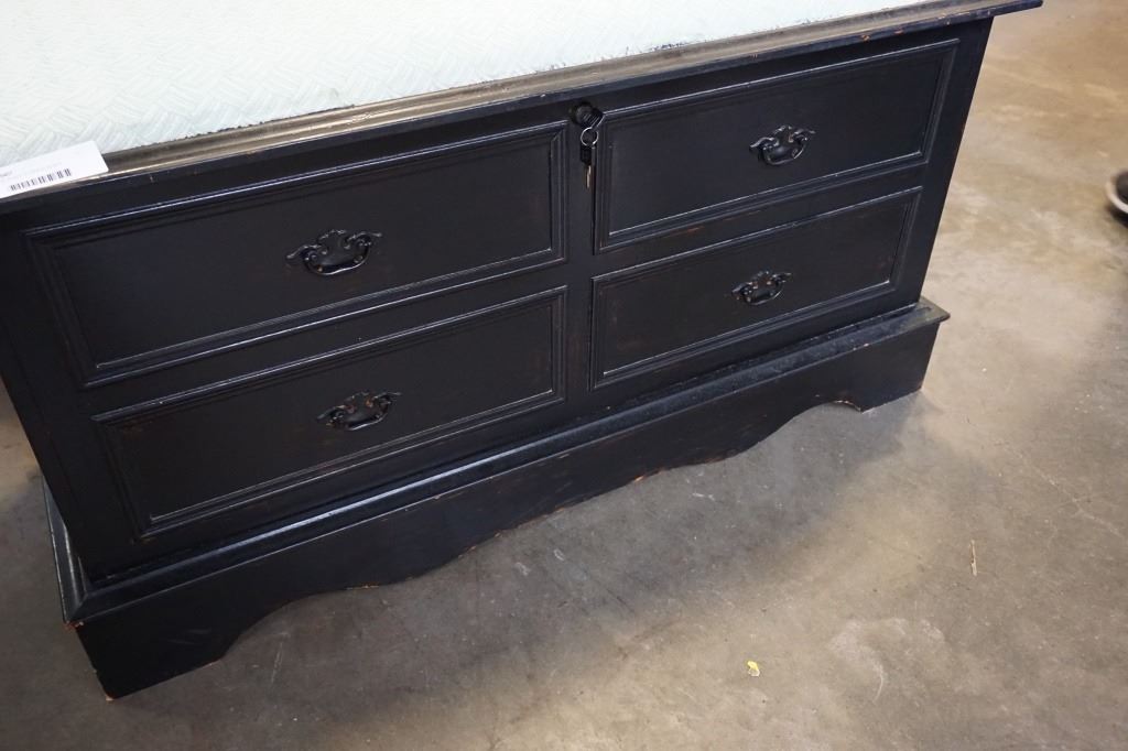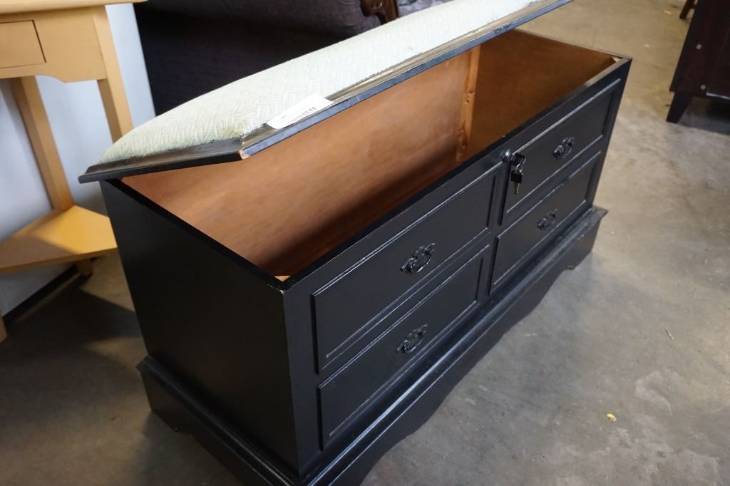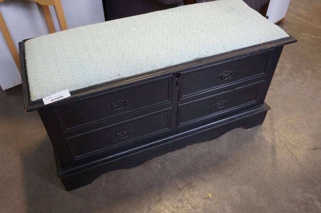 VINTAGE BLACK STORAGE BENCH