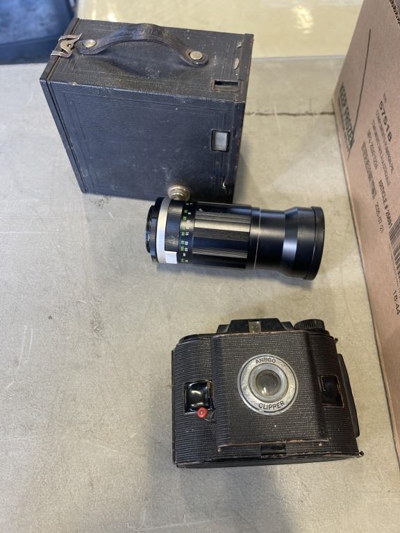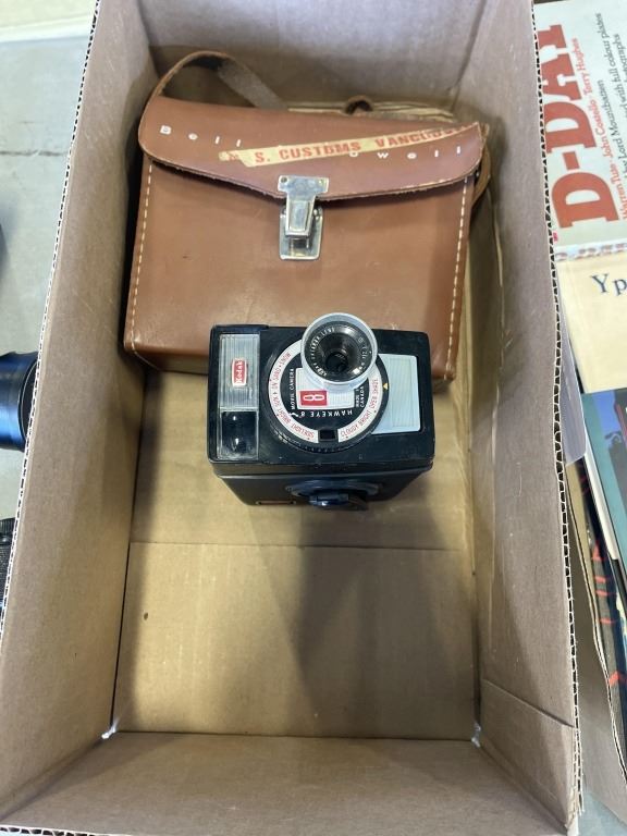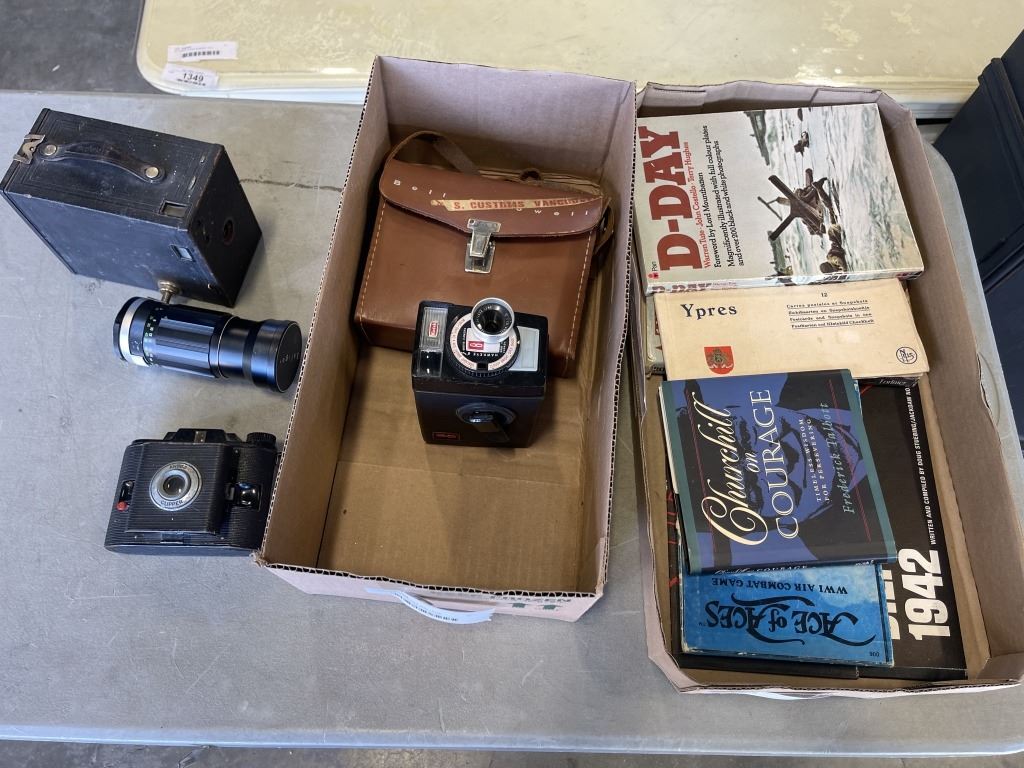 VINTAGE CAMERAS AND LENS WITH WAR BOOKS
