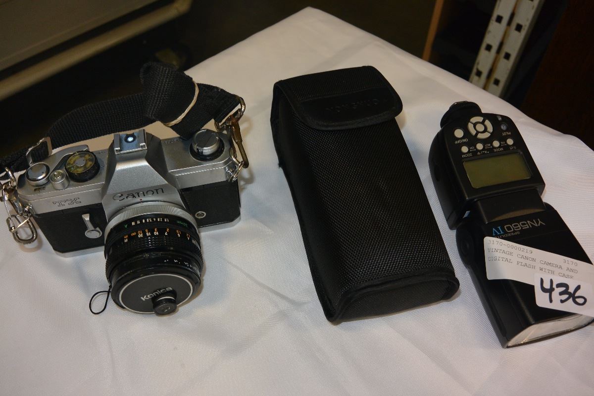 VINTAGE CANON CAMERA AND DIGITAL FLASH WITH CASE