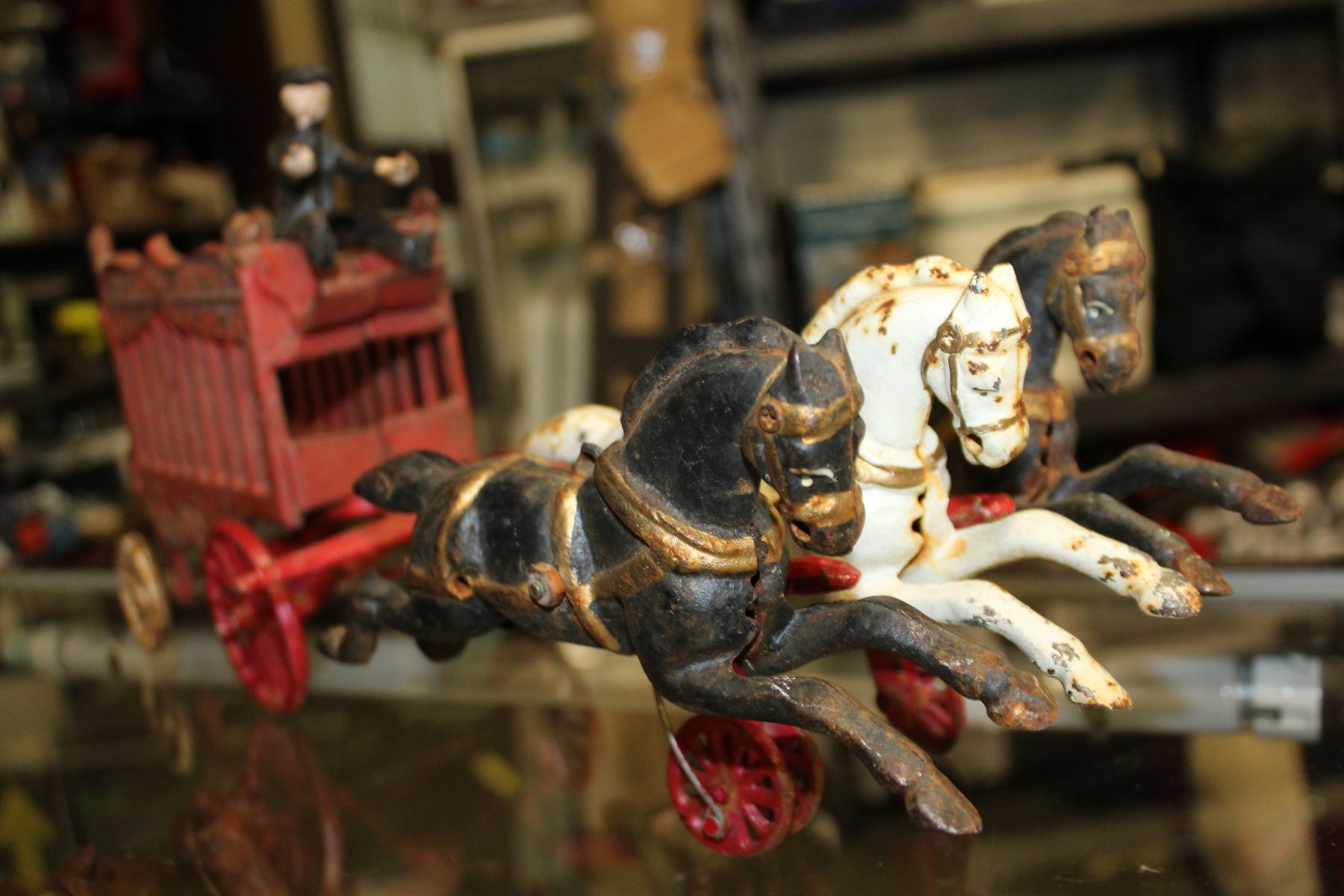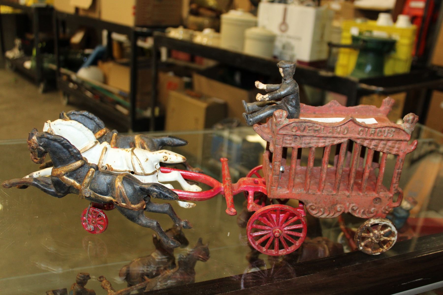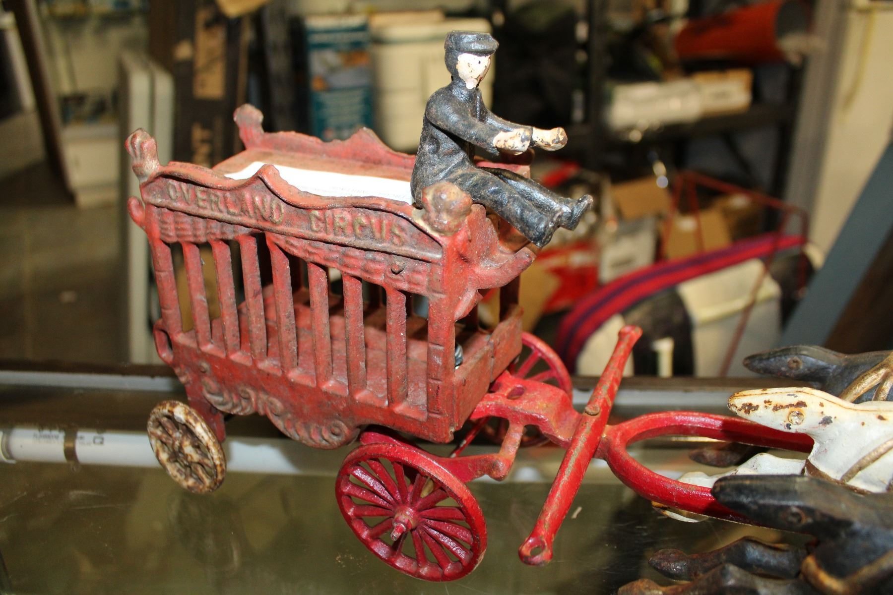 VINTAGE CAST IRON HORSE DRAWN CIRCUS CARRIAGE