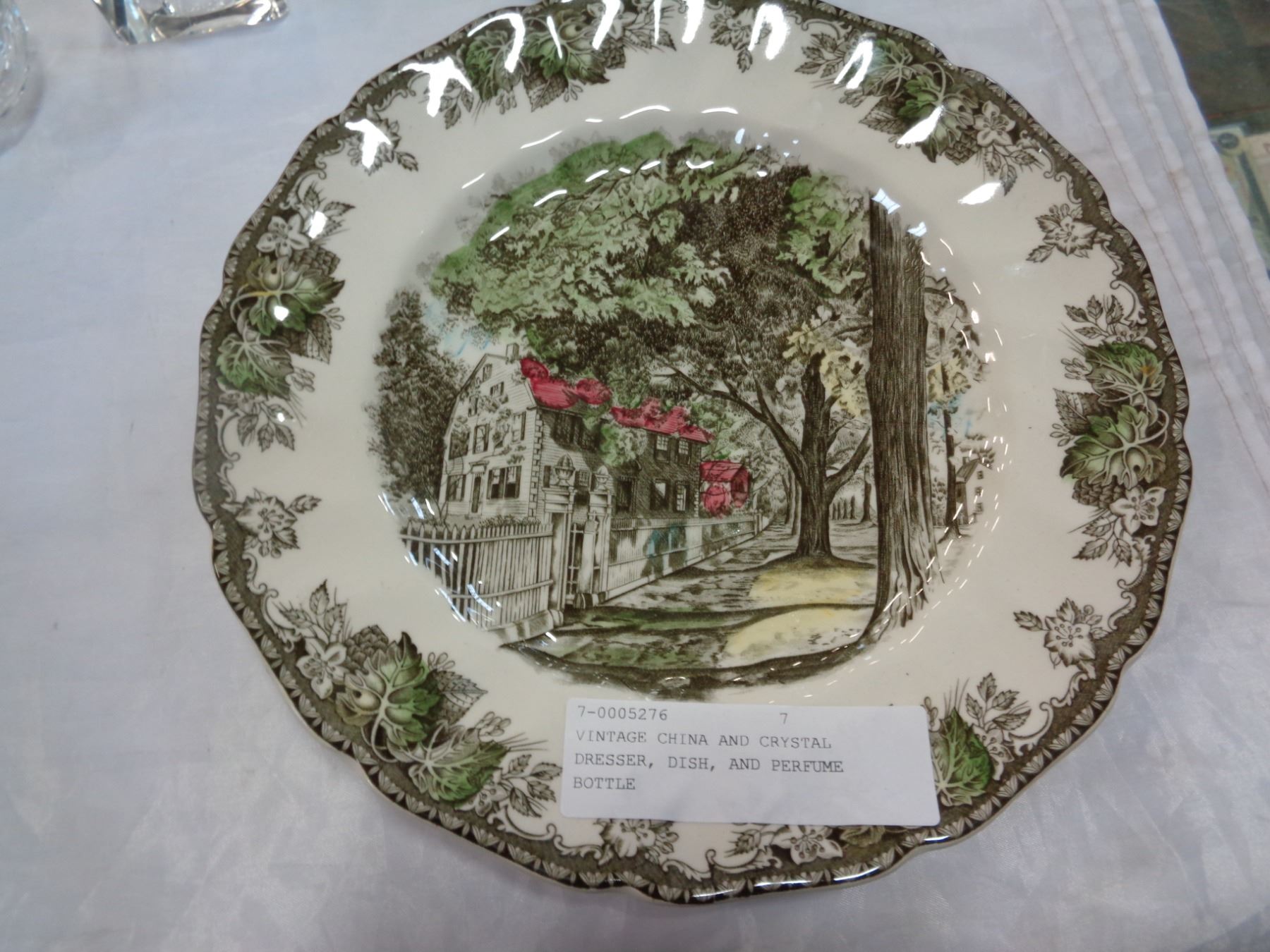 VINTAGE CHINA AND CRYSTAL DRESSER, DISH, AND PERFUME BOTTLE