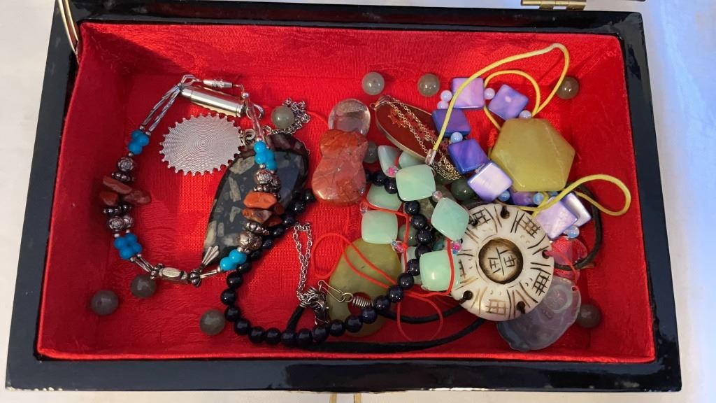 VINTAGE CHINESE JEWLERY CASE WITH JEWLERY CONTENTS