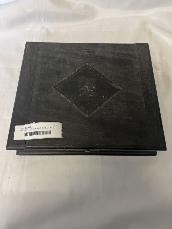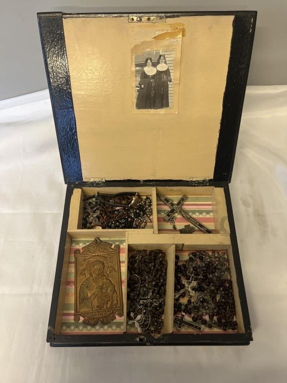 VINTAGE CIGAR BOX USED BY RELIGIOUS SISTER FOR HER PRAYER BEADS