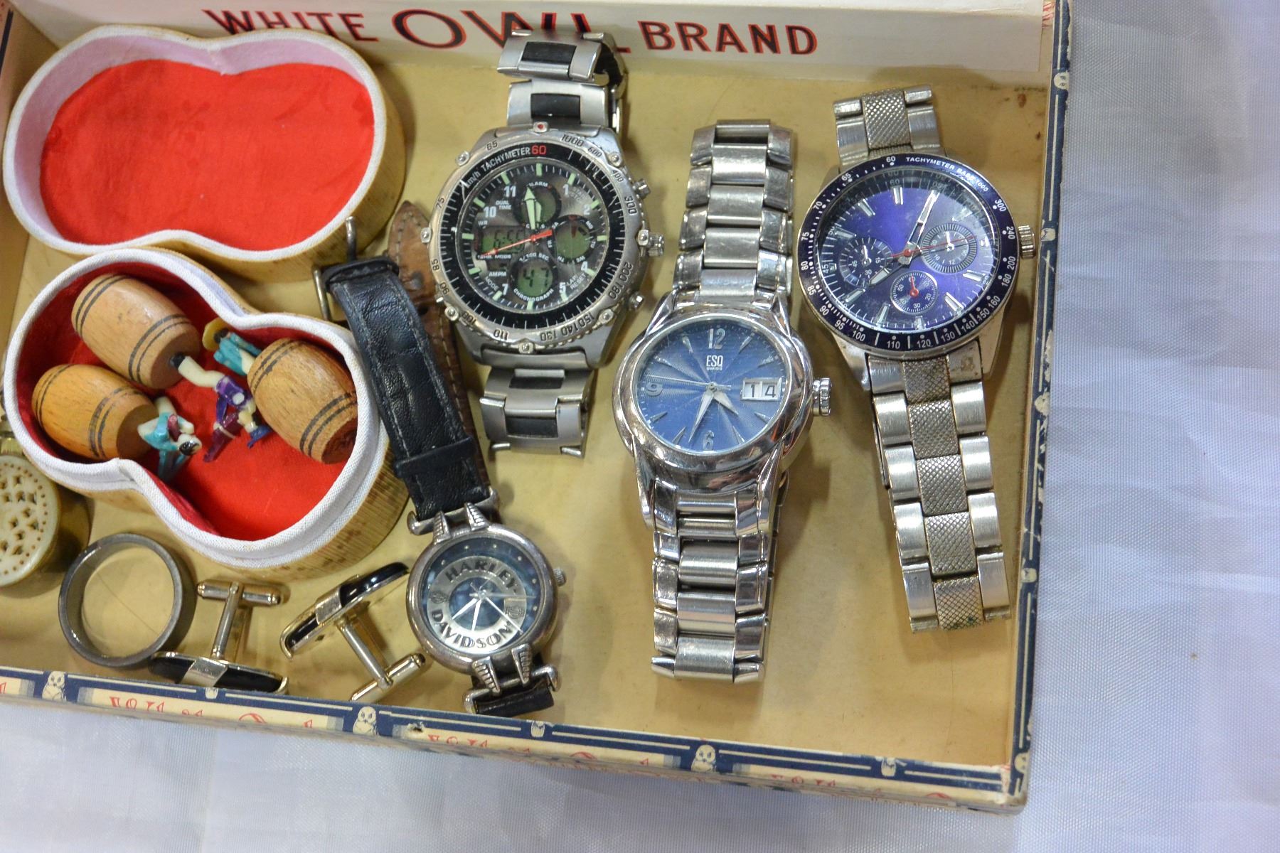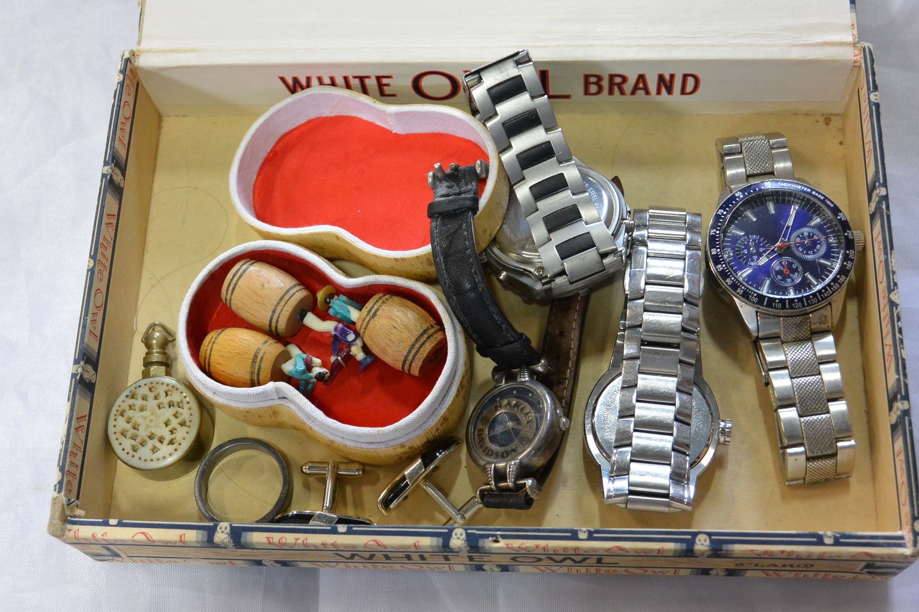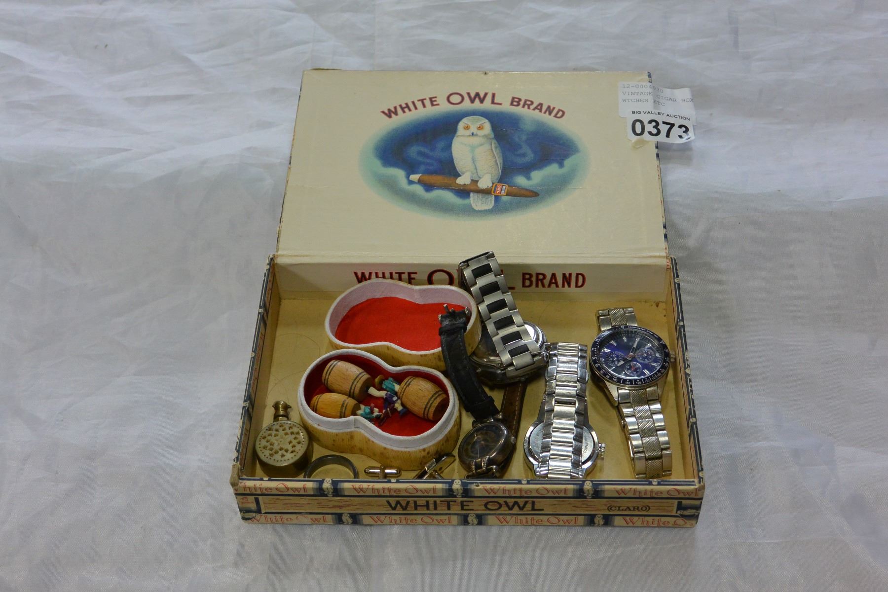 VINTAGE CIGAR BOX WITH ESTATE WTCHES ETC