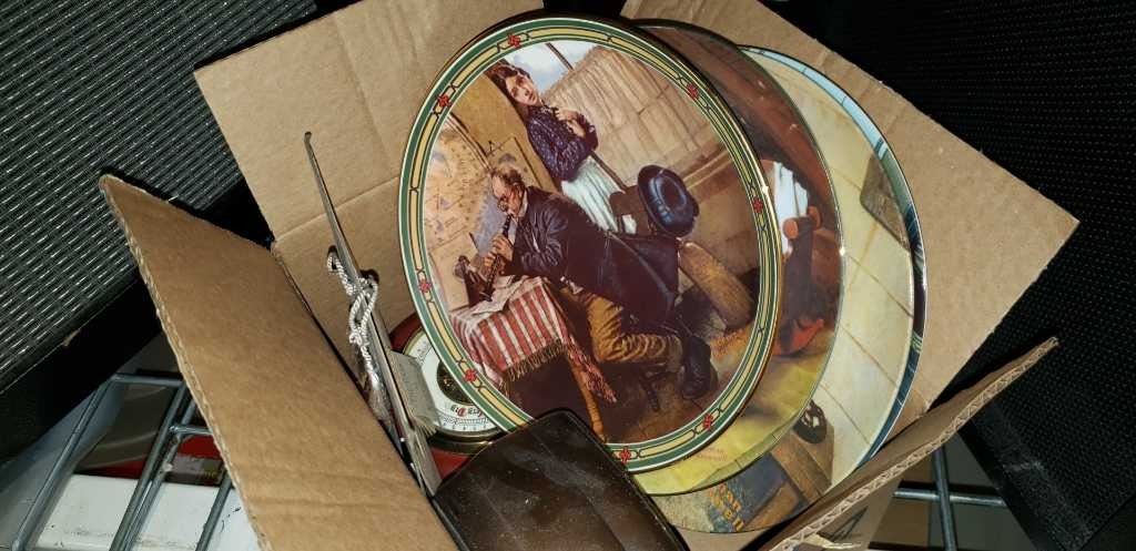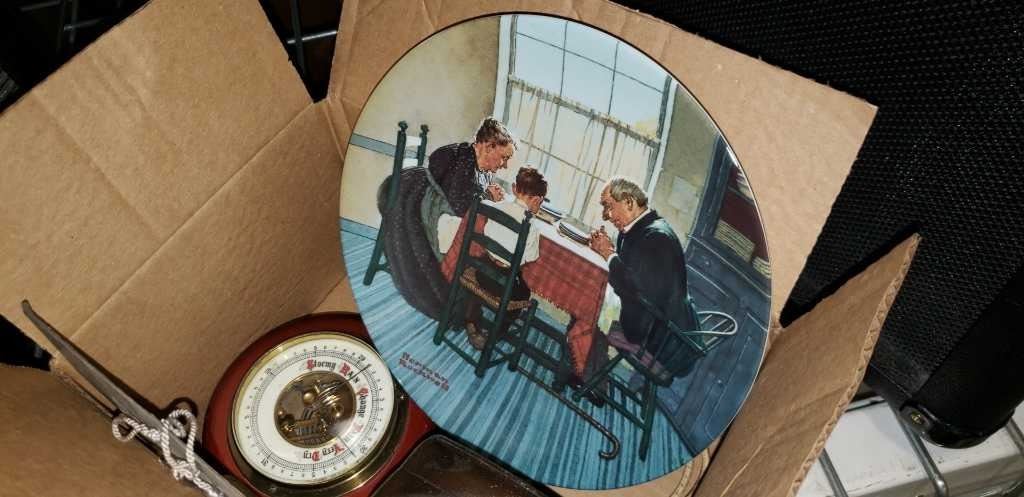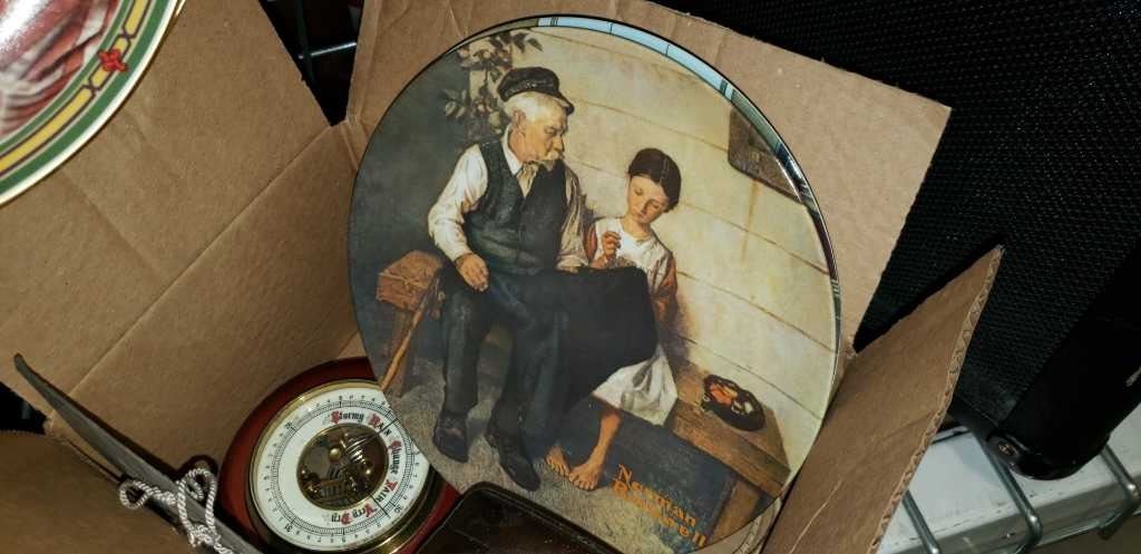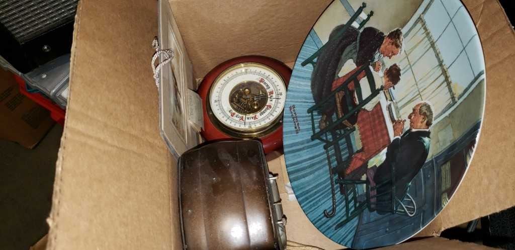 VINTAGE CLOCK, THERMOMETER, 1930 DESK CALENDAR, AND 4 DECORATIVE PLATES W/ CERTIFICATES