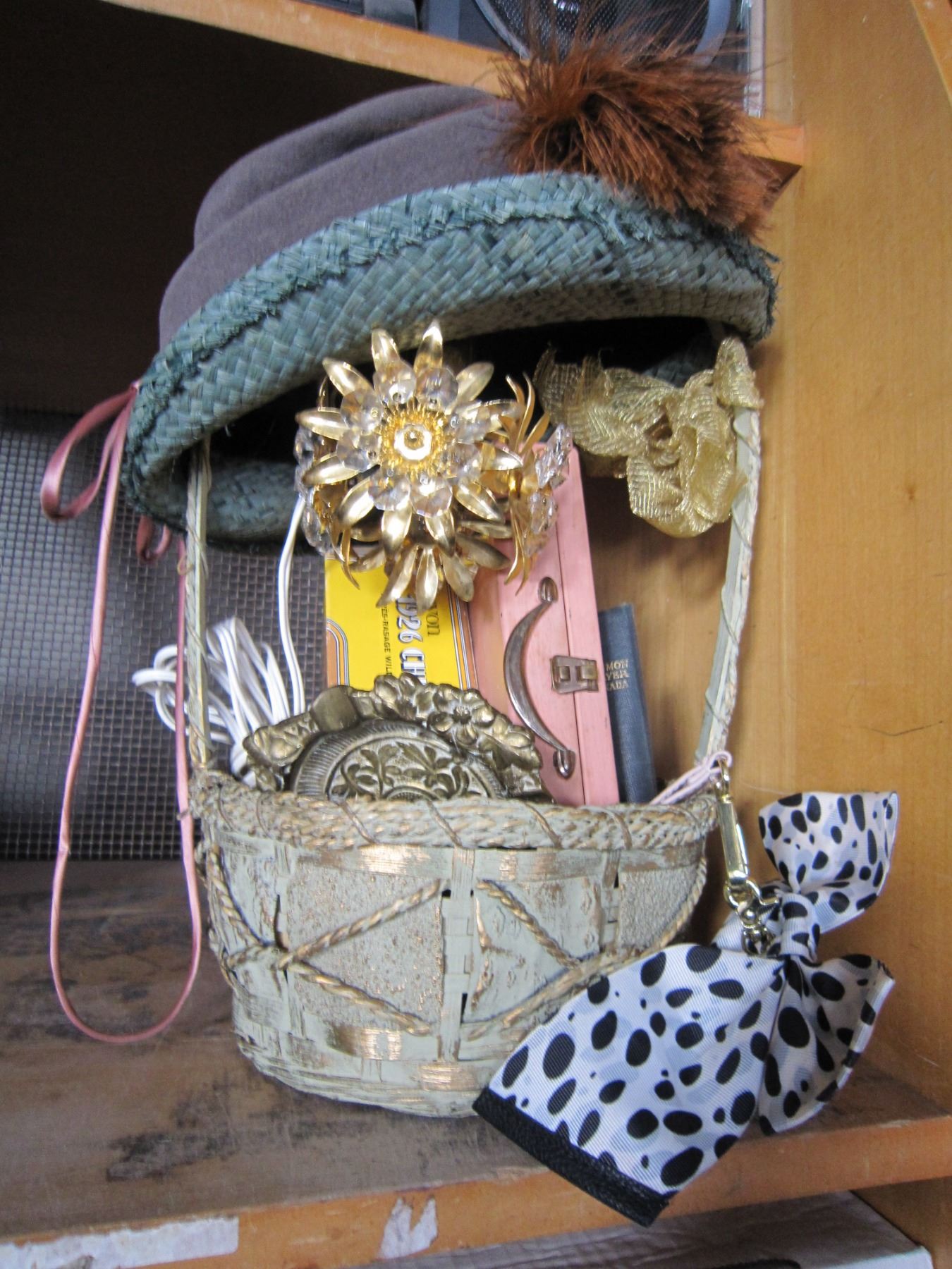 VINTAGE COLLECTION IN BASKET PENDANT LAMP, VINTAGE HATS, AND VANITY SET