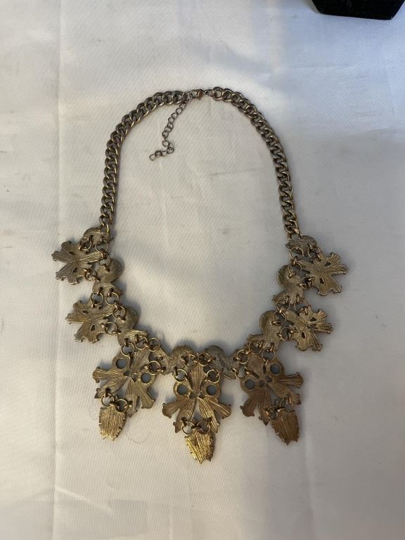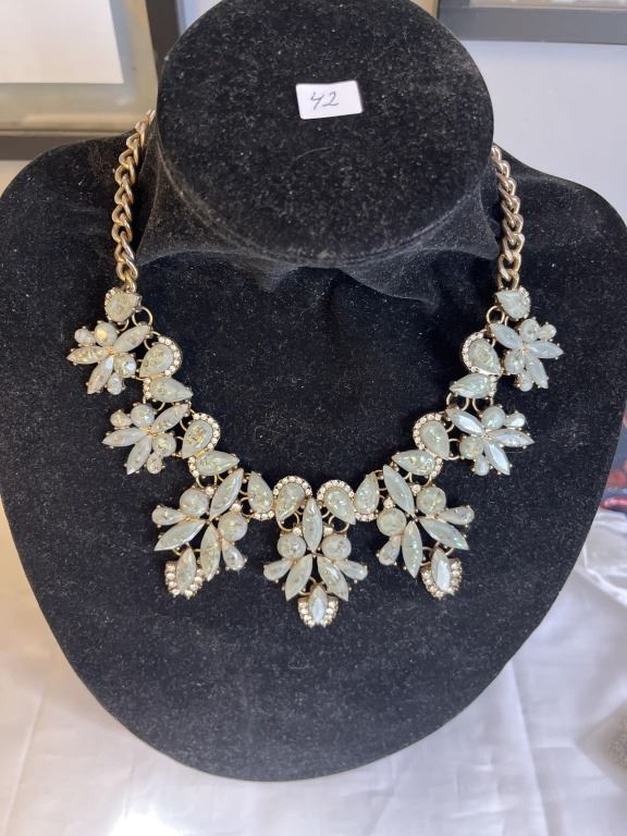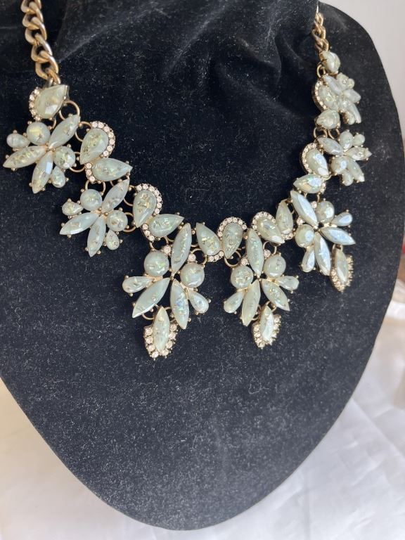 VINTAGE CONFETTI GLASS STONES AND RHINESTONES NECKLACE W/ STAND