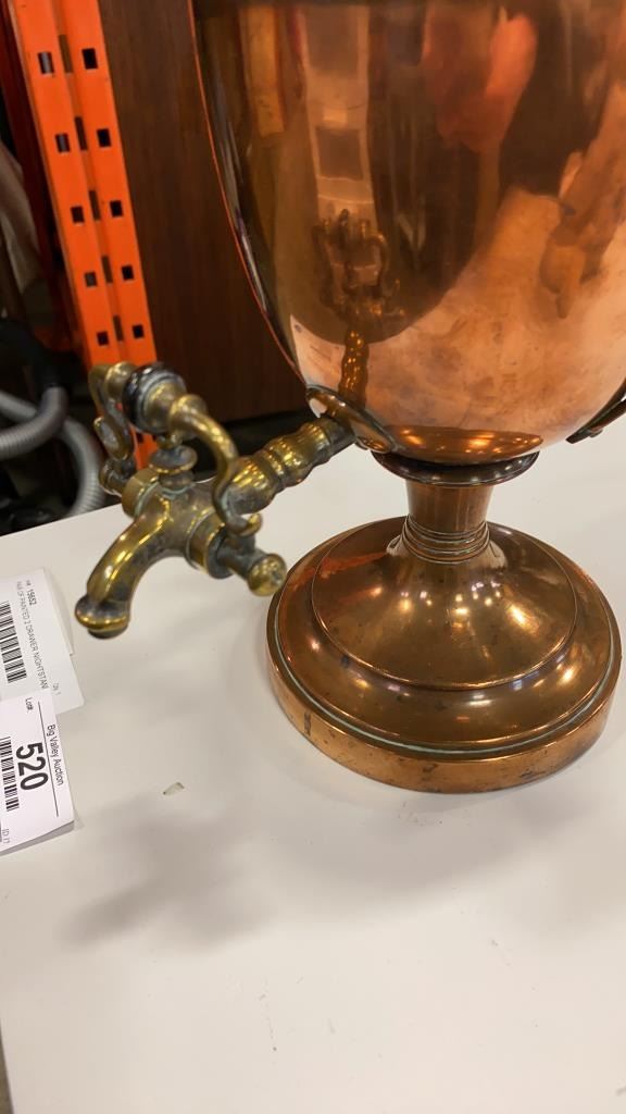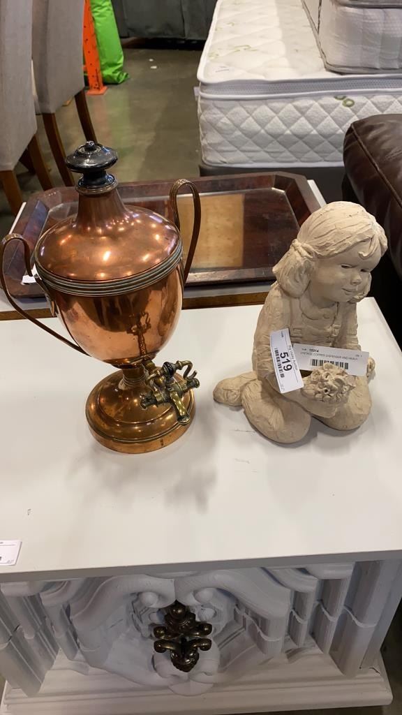 VINTAGE COPPER DISPENSER AND HEAVY FIGURE