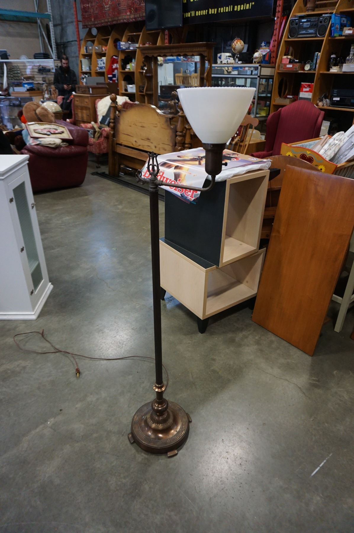 VINTAGE COPPPER LAMP W/ MILK GLASS SHADE
