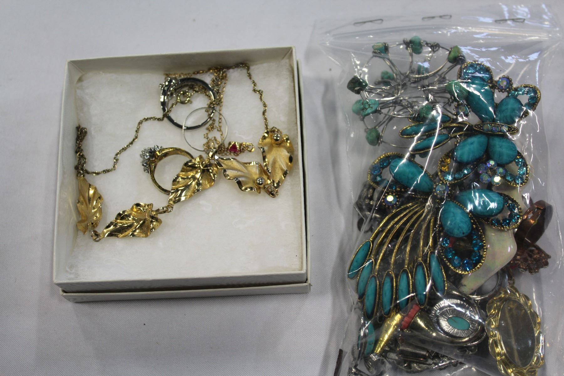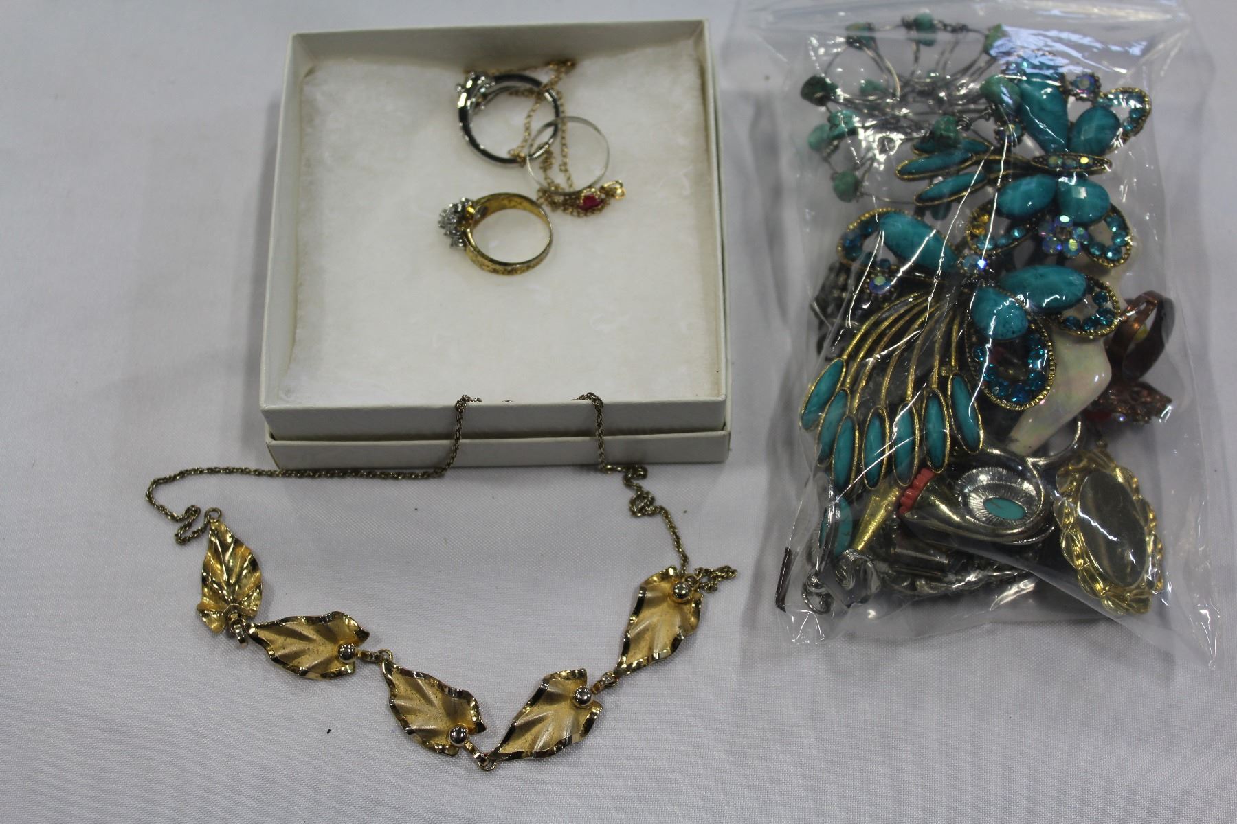 VINTAGE CORO STYLE CHOKER RINGS AND RUBY PENDANT AND BAG OF TURQUOISE JEWELLRY