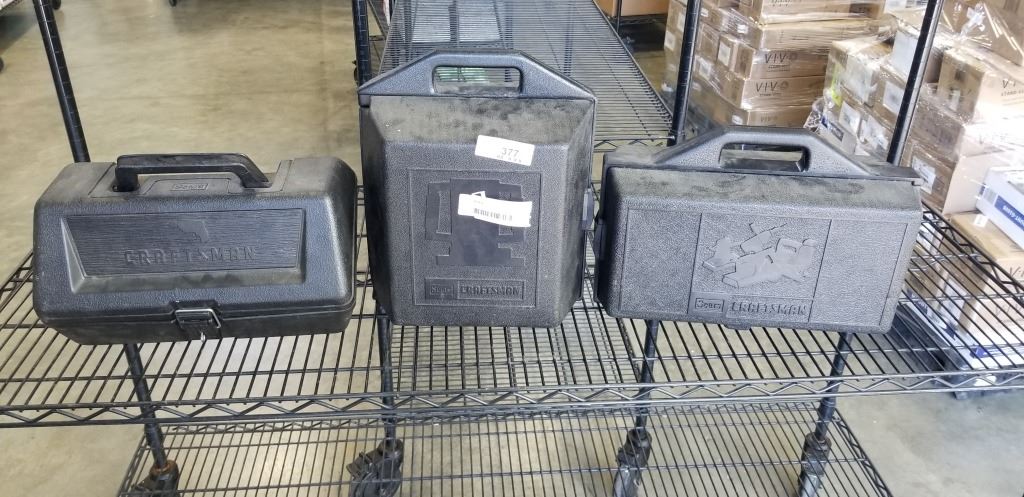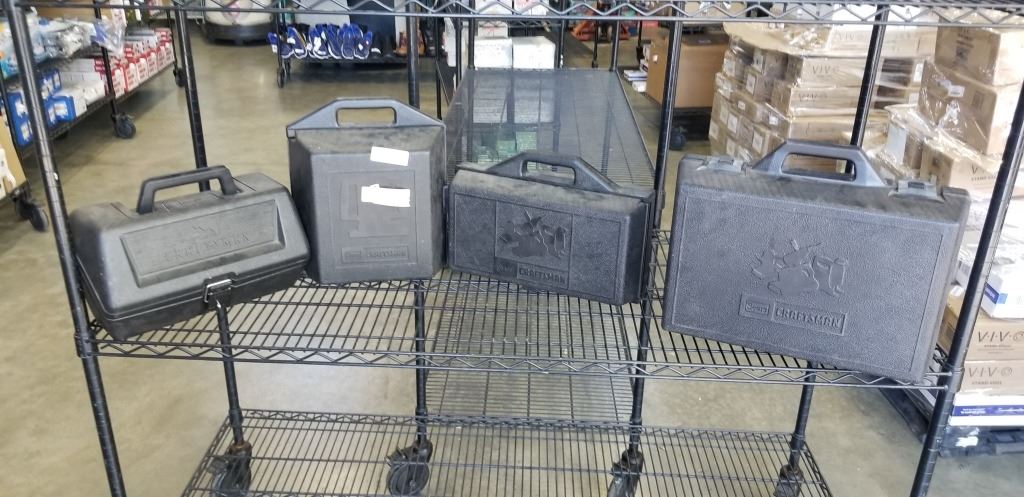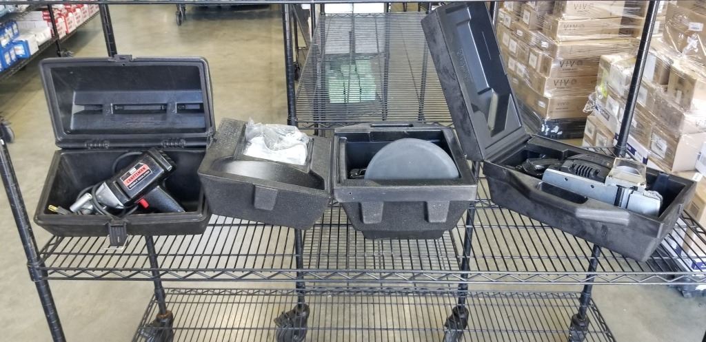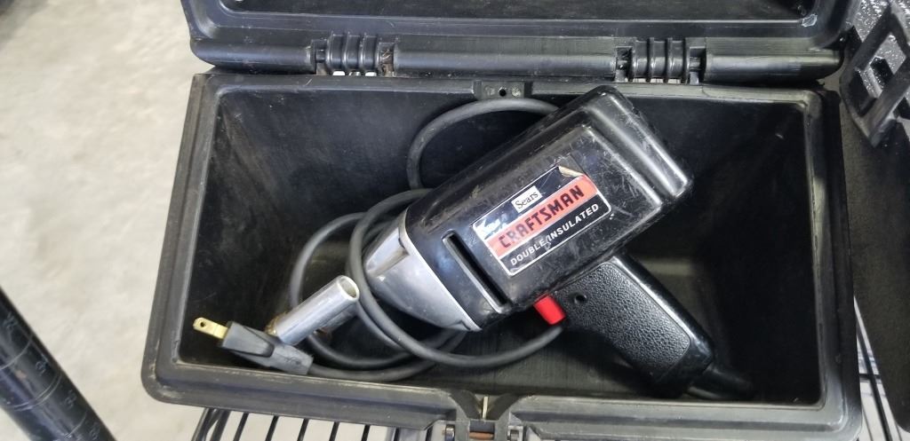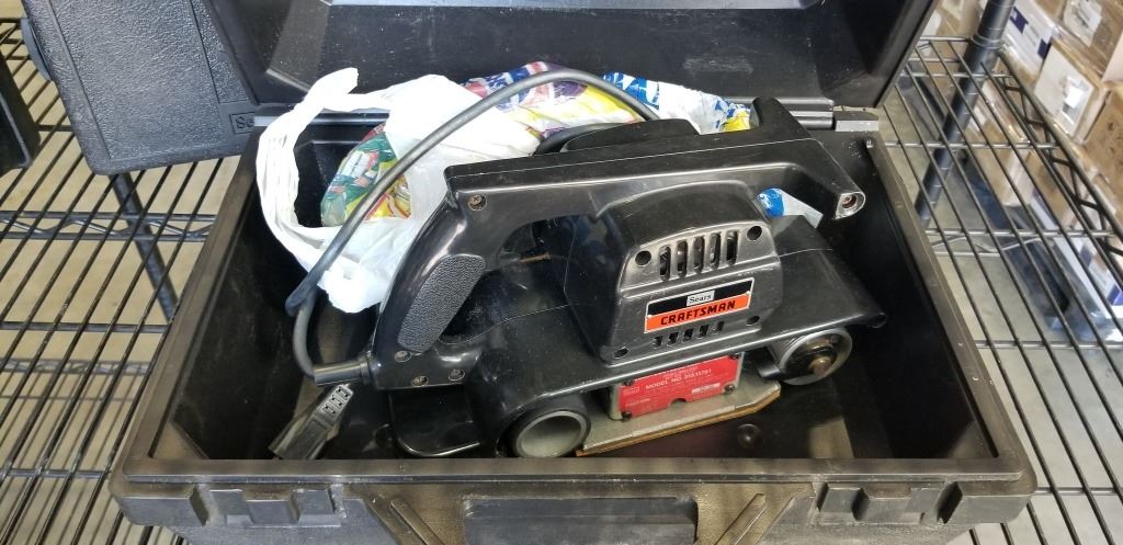 VINTAGE CRAFTSMAN POWER TOOL LOT INCLUDING BUFFER POLISHER, 3" DUSTLESS BELT SANDER, PLANER AND DRILL IN MOLDED CASES