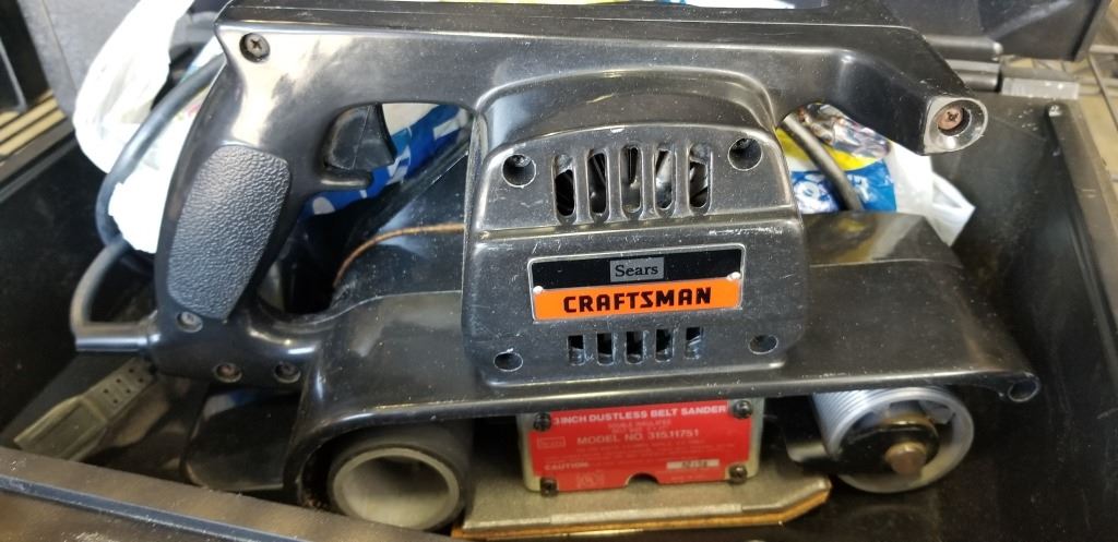 VINTAGE CRAFTSMAN POWER TOOL LOT INCLUDING BUFFER POLISHER, 3" DUSTLESS BELT SANDER, PLANER AND DRIL