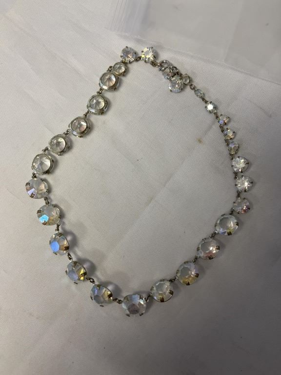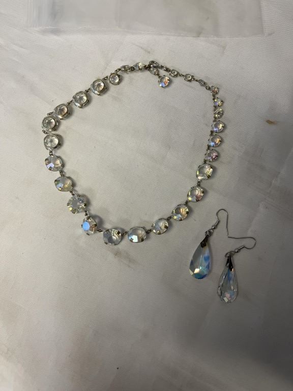 VINTAGE CRYSTAL CHOKER NECKLACE AND PAIR OF EARRINGS