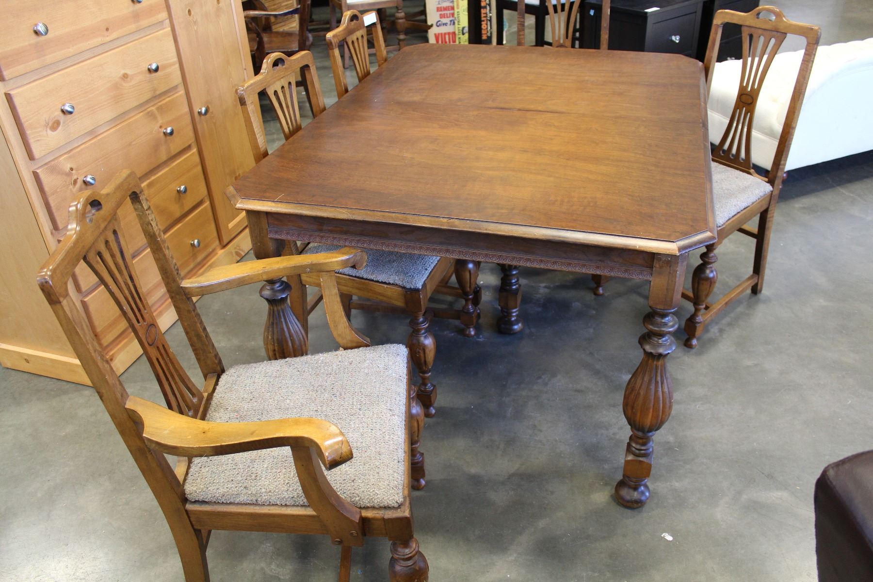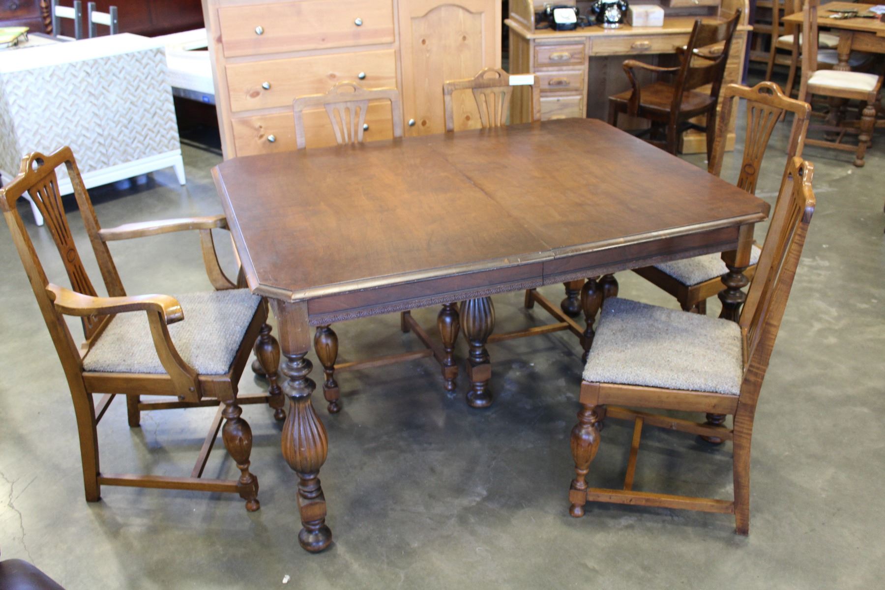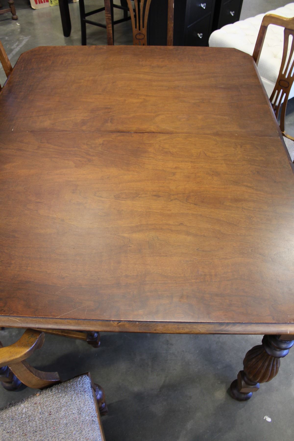 VINTAGE DINING TABLE WITH JACK KNIFE LEAF AND FOUR CHAIRS