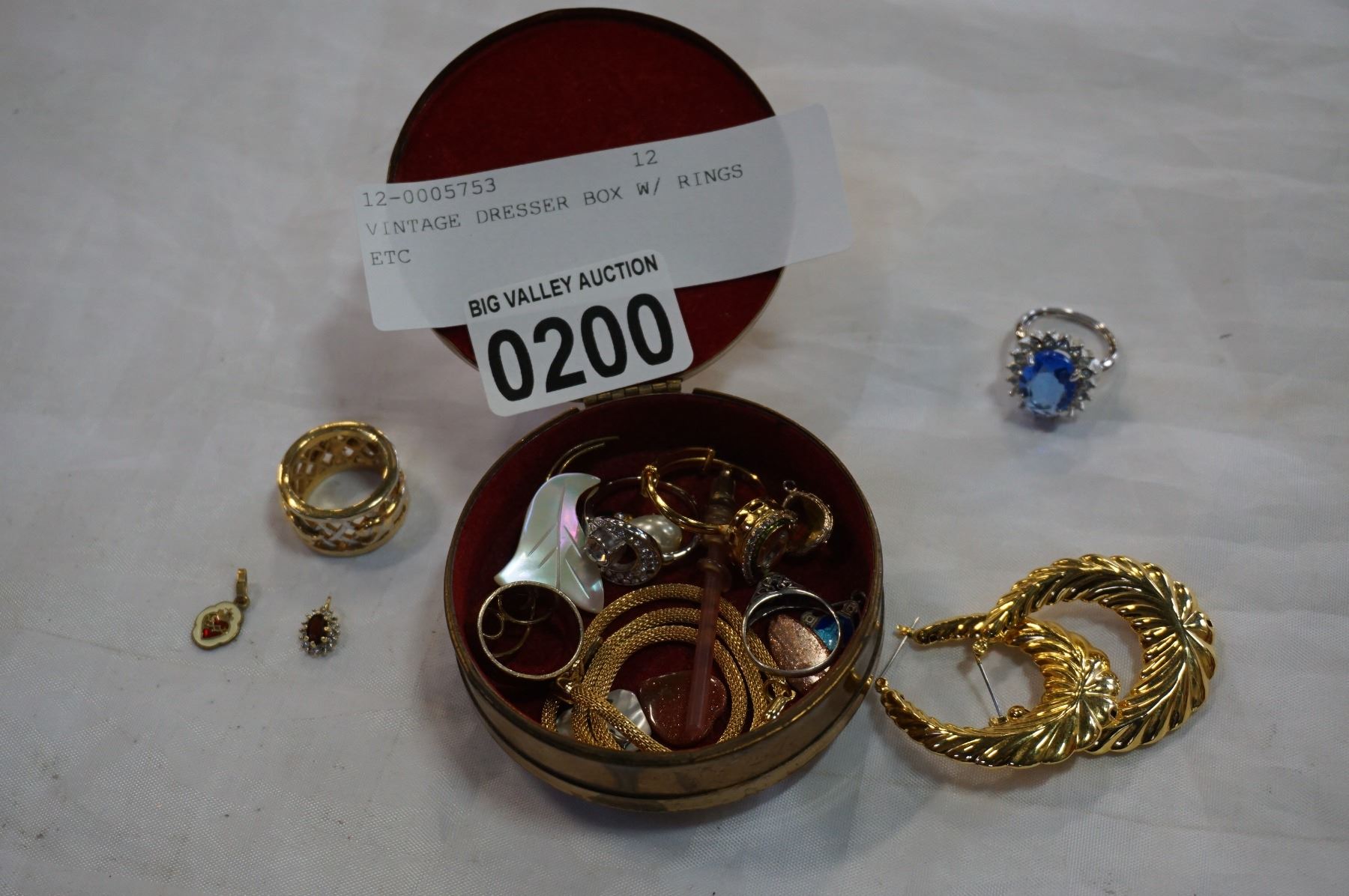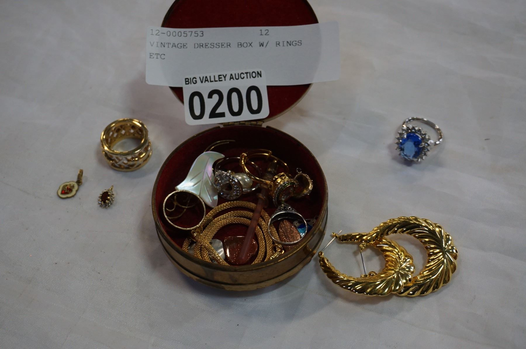 VINTAGE DRESSER BOX W/ RINGS ETC