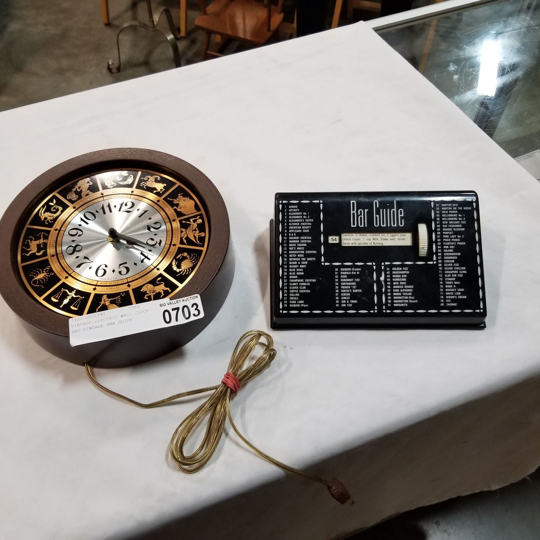 VINTAGE ELECTRIC WALL CLOCK AND VINTAGE BAR GUIDE