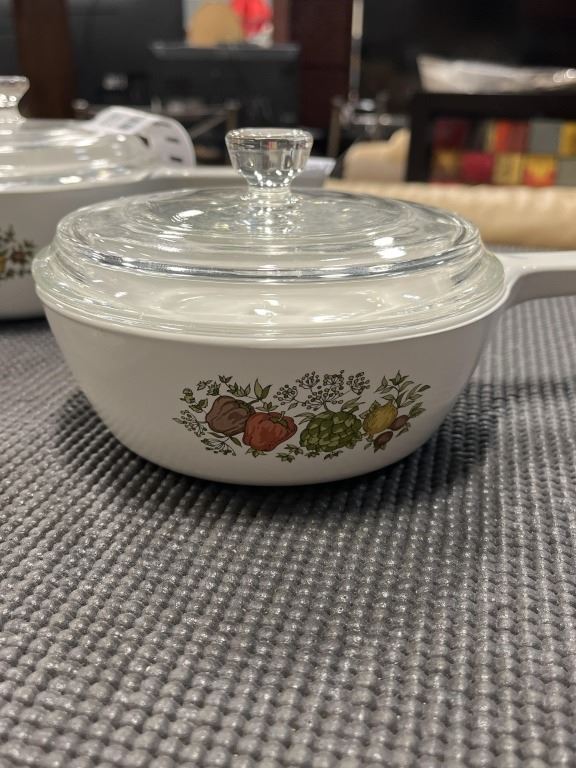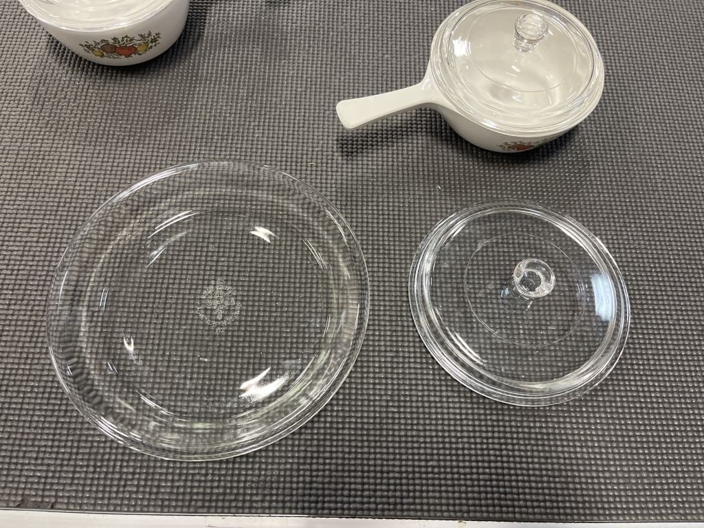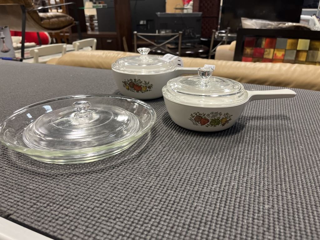 VINTAGE FIRE KING DISH AND 2 LIDDED CORNING WARE BAKING DISHES