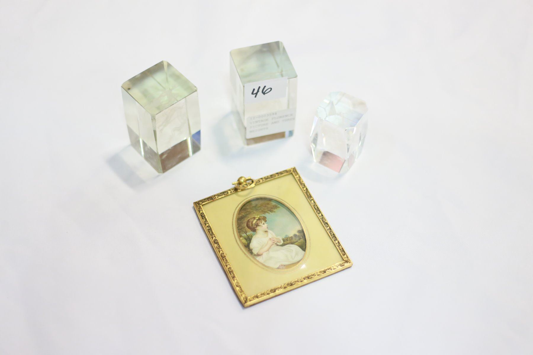 VINTAGE FLORENCE ITALY FRAMED PICTURE AND THREE PAPER WEIGHTS