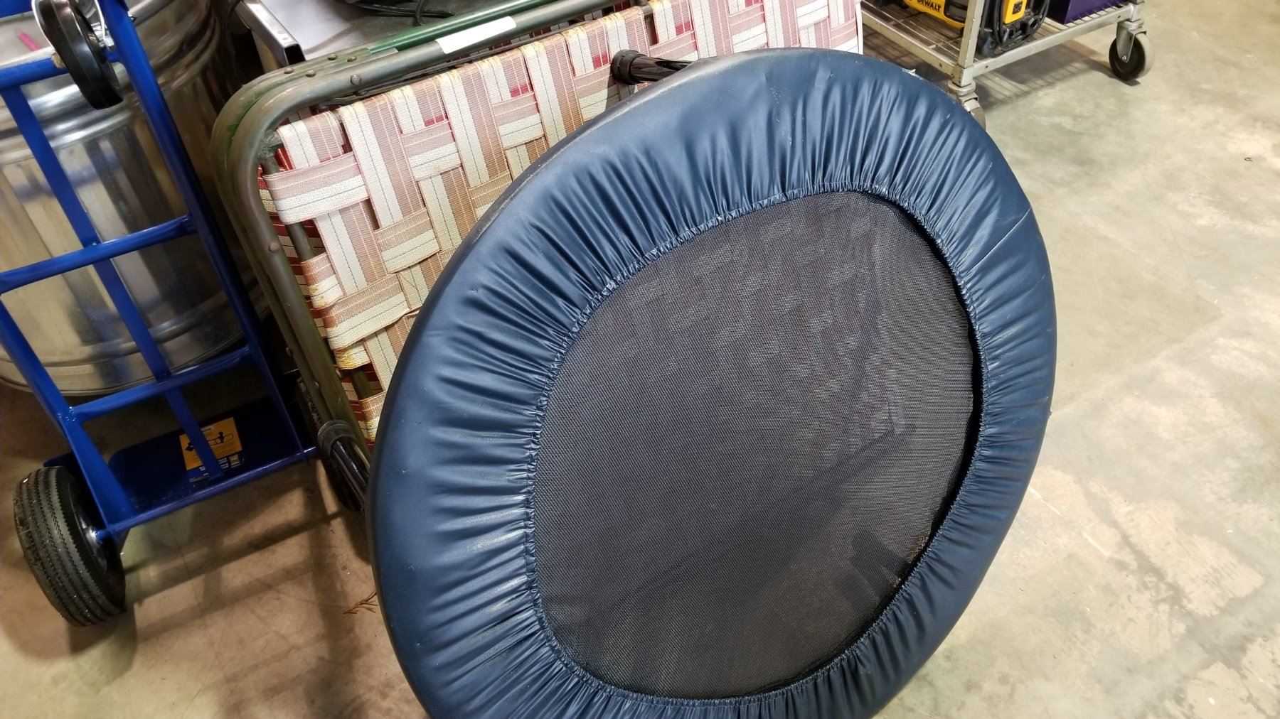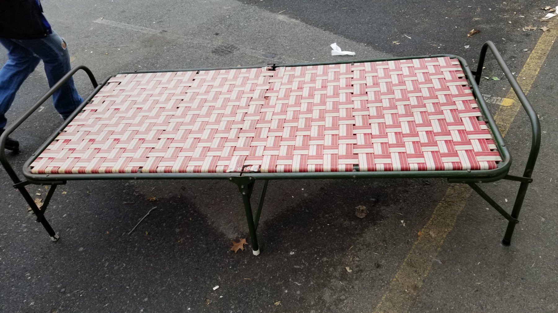 VINTAGE FOLDING COT AND EXERCISE TRAMPOLINE