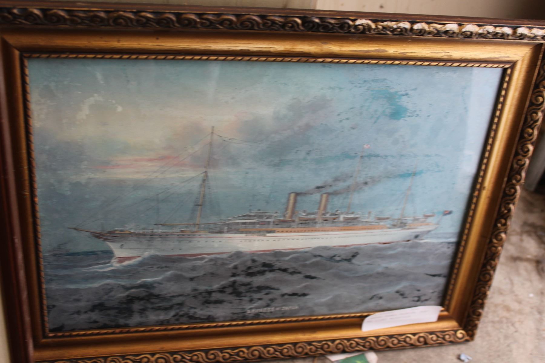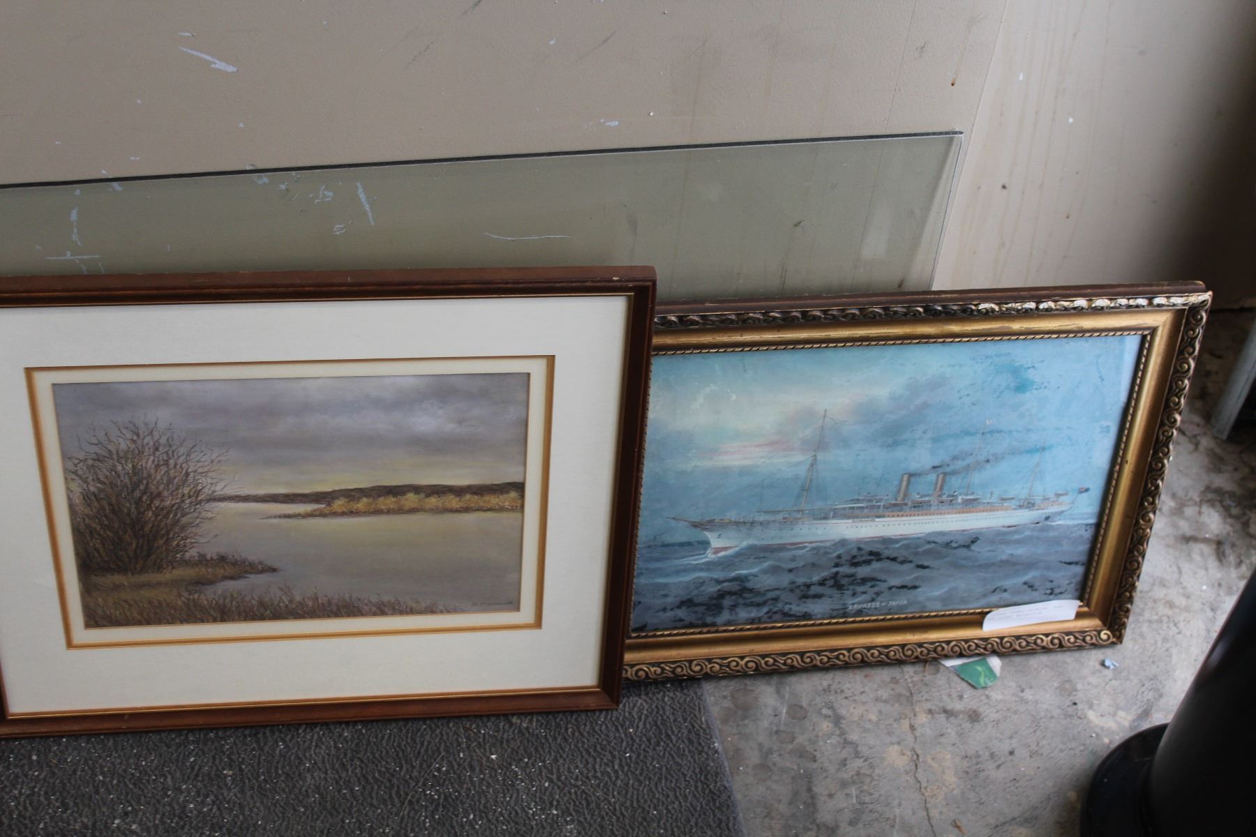 VINTAGE FRAMED PAINTING BOAT AND SIGNED WATERCOLOR