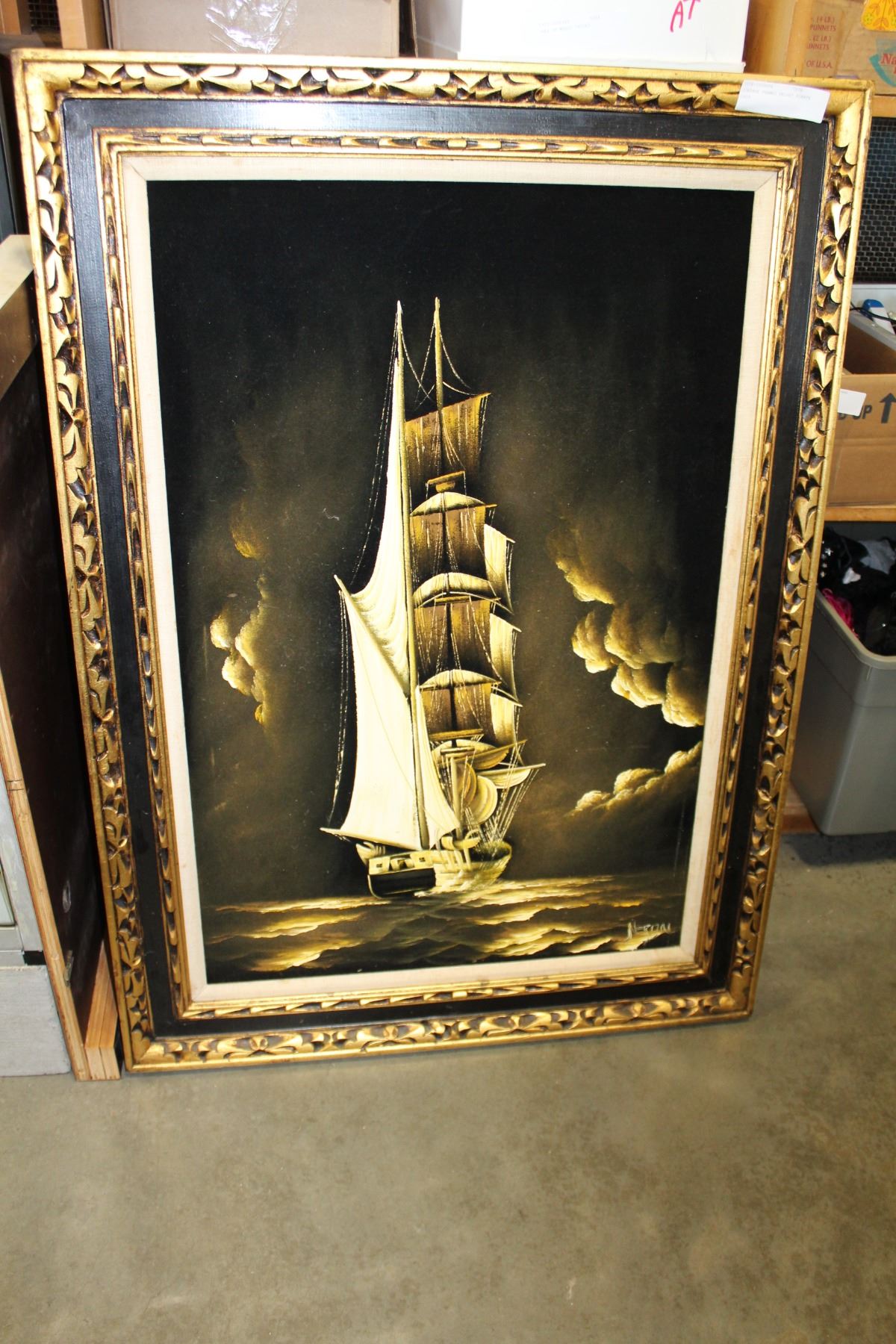 VINTAGE FRAMED VELVET PIRATE SHIP