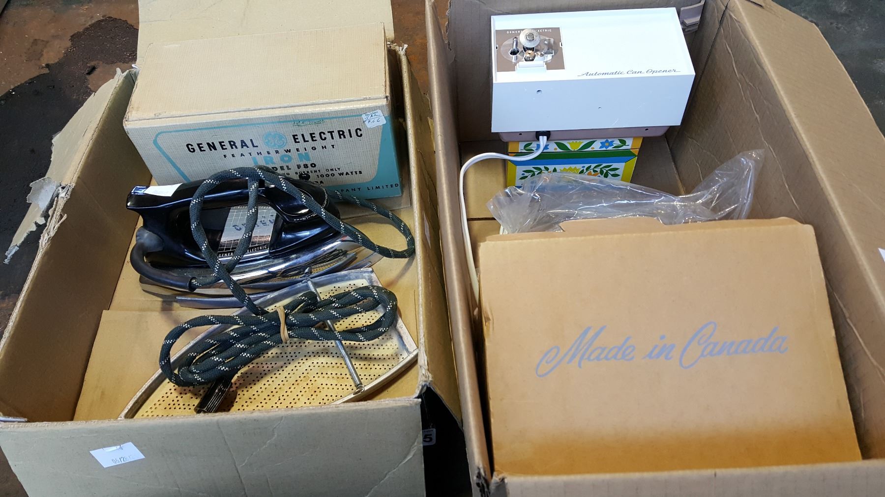 VINTAGE GE UNDER COUNTER CAN OPENER AND VINTAGE GE IRON