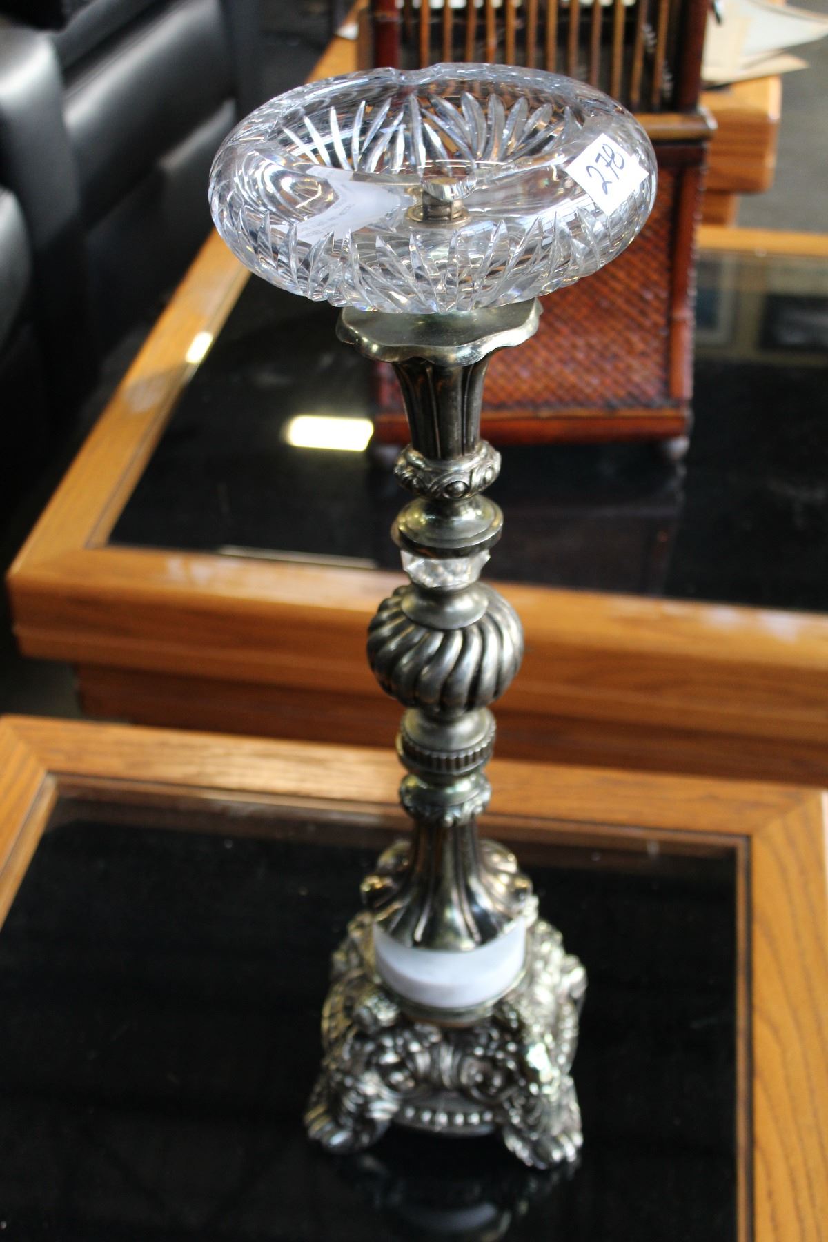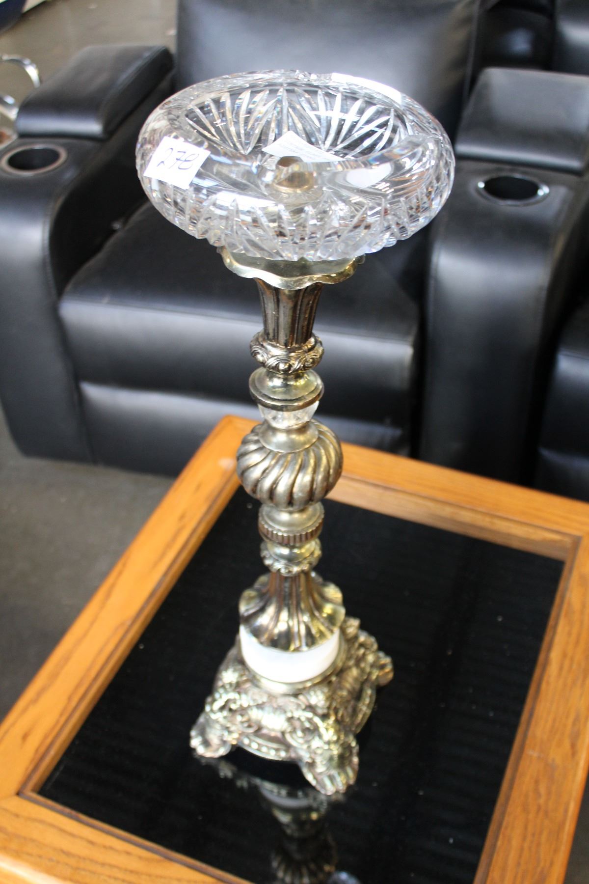 VINTAGE GLASS AND METAL ASHTRAY STAND