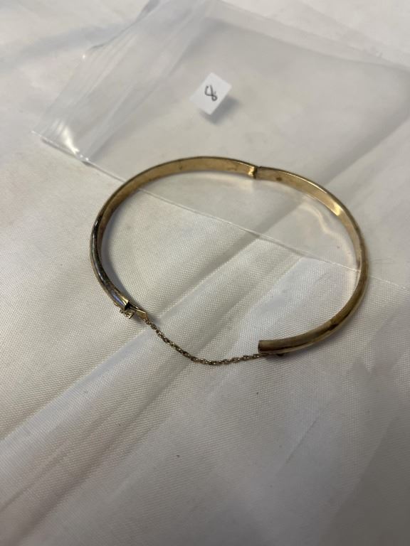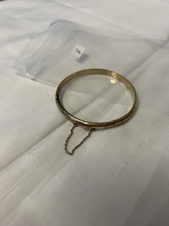 VINTAGE GOLD BANGLE W/ SAFETY CHAIN ORIGINAL PATTINA MARKED 925