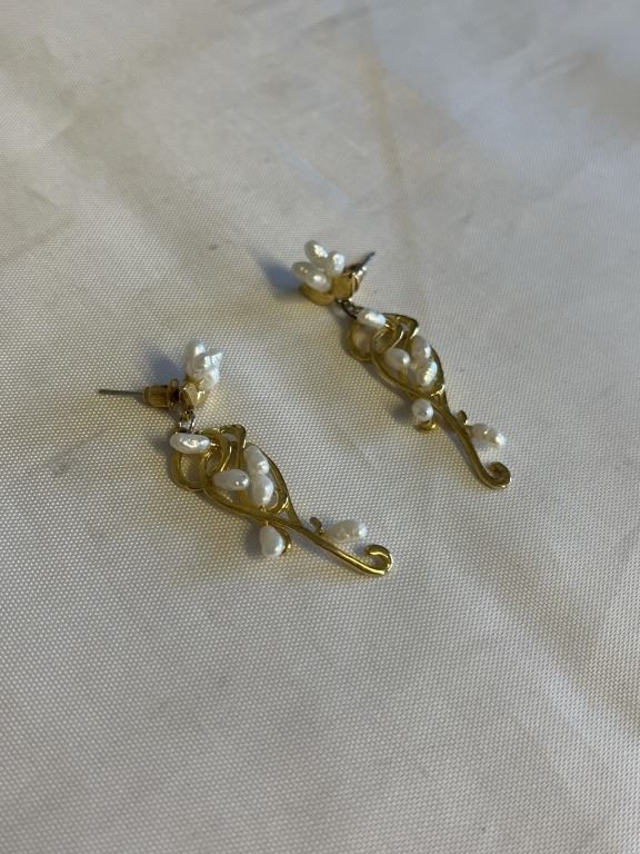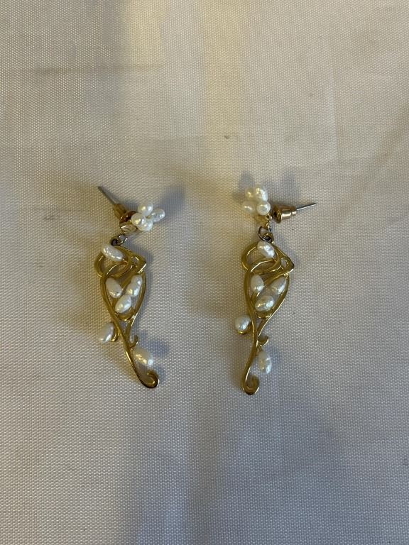 VINTAGE GOLD PLATED W/ PEARLS EARRINGS