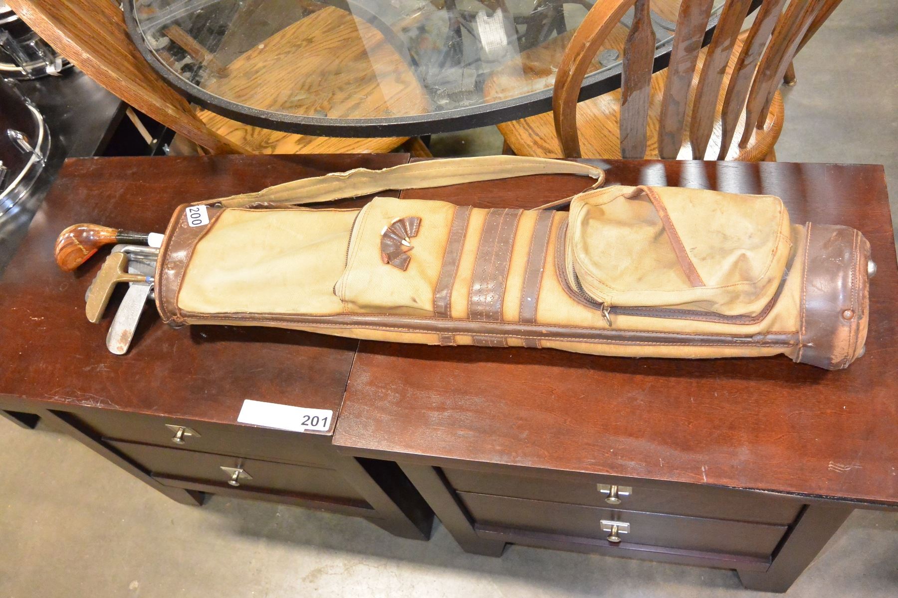 VINTAGE GOLF CLUBS AND WOODEN TEES