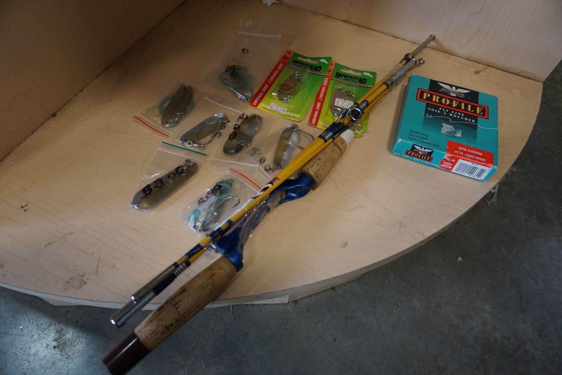 VINTAGE GREAT LAKES MADE IN CANADA FLY ROD W/ LINE AND NEW LURES