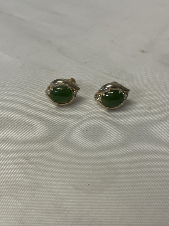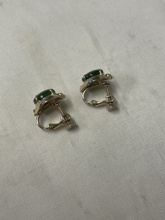 VINTAGE GREEN BC JADE/ NEPHRITE STONES PAIR OF SCREW ON/ CLIP ON EARRINGS