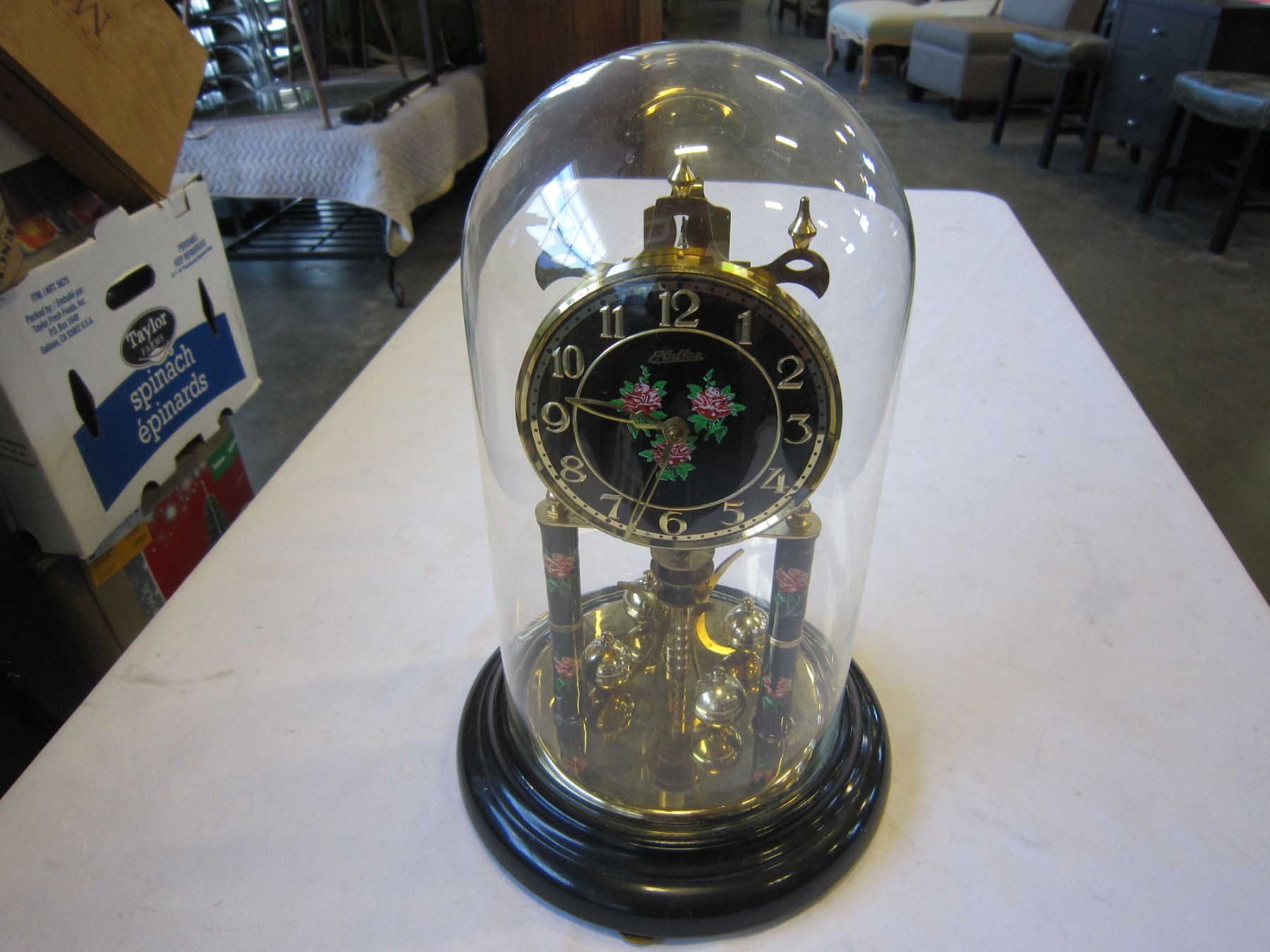 VINTAGE HALLER MECHANICAL CLOCK W/ GLASS DOME AND ROSES MOTIF