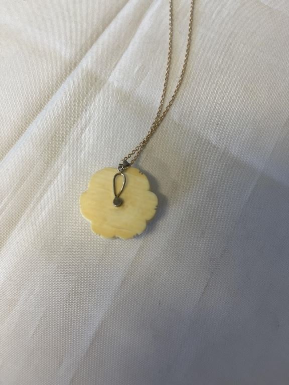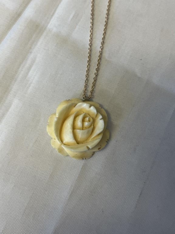 VINTAGE HAND CARVED GENUINE IVORY ROSE PENDANT W/ GOLD CHAIN 16-18" LENGTH