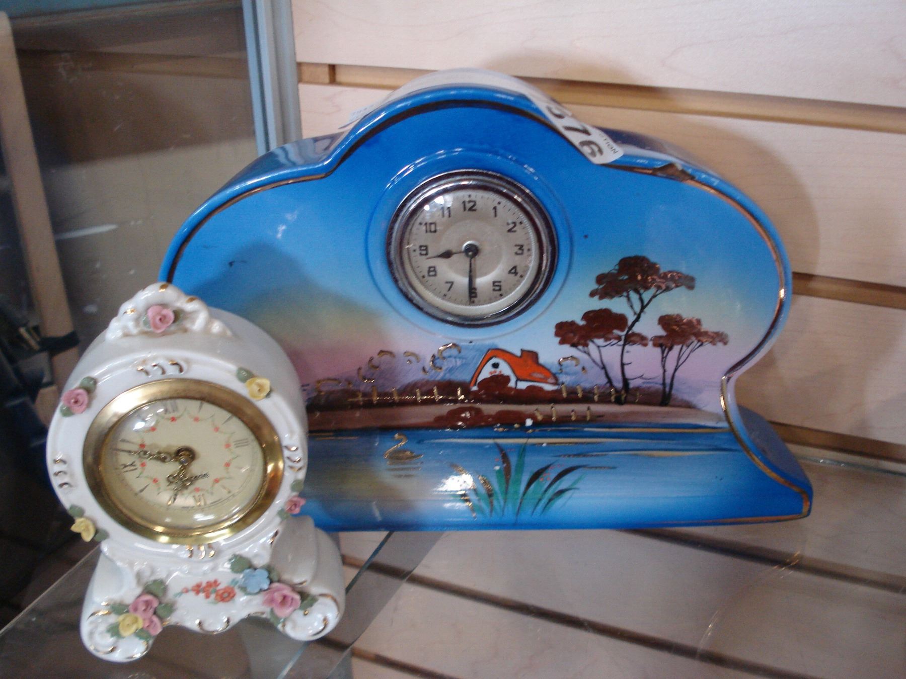 VINTAGE HAND PAINTED MANTLE CLOCK AND SMALL WEST GERMAN CLOCK