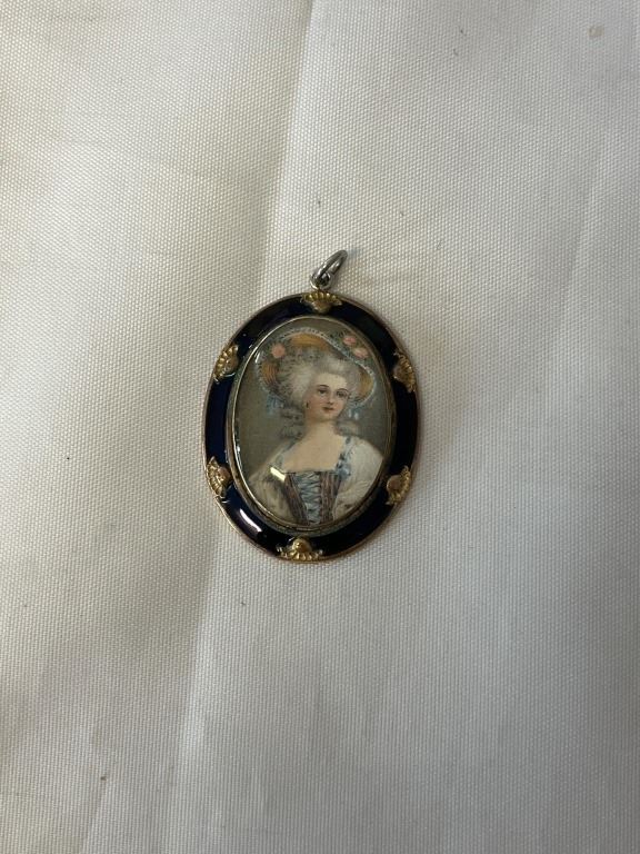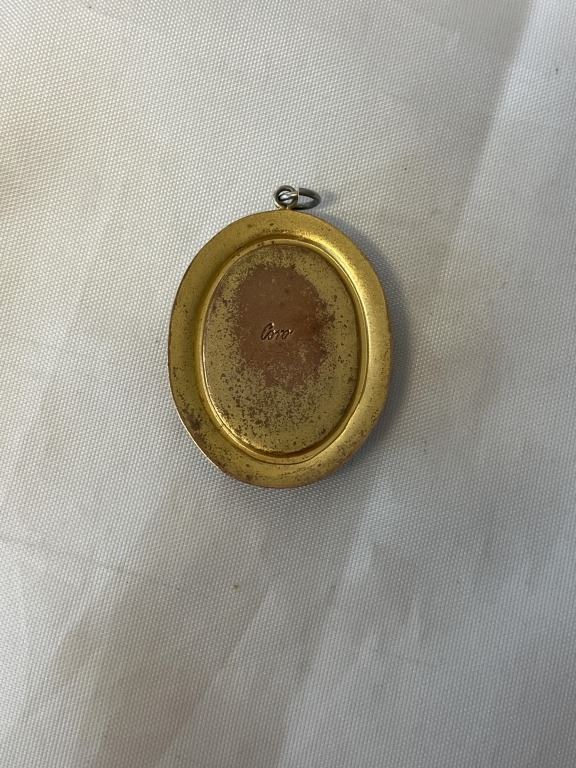 VINTAGE HAND PAINTED PORTRAIT PENDANT MARKED CORO