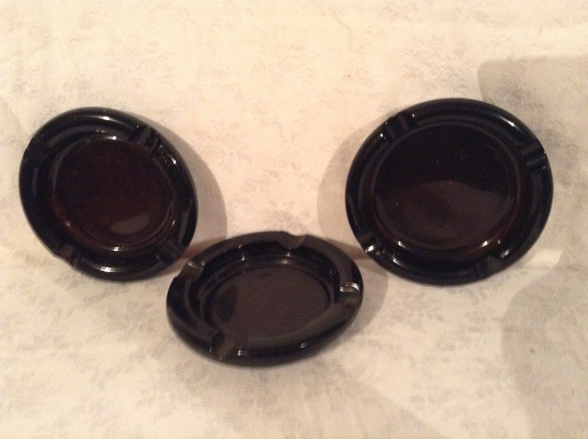 VINTAGE HEAVY BROWN GLASS ASHTRAY