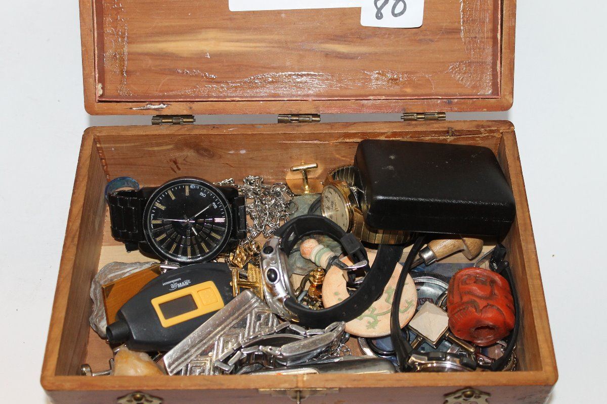 VINTAGE JEWELLRY BOX WITH WATCHES ETC