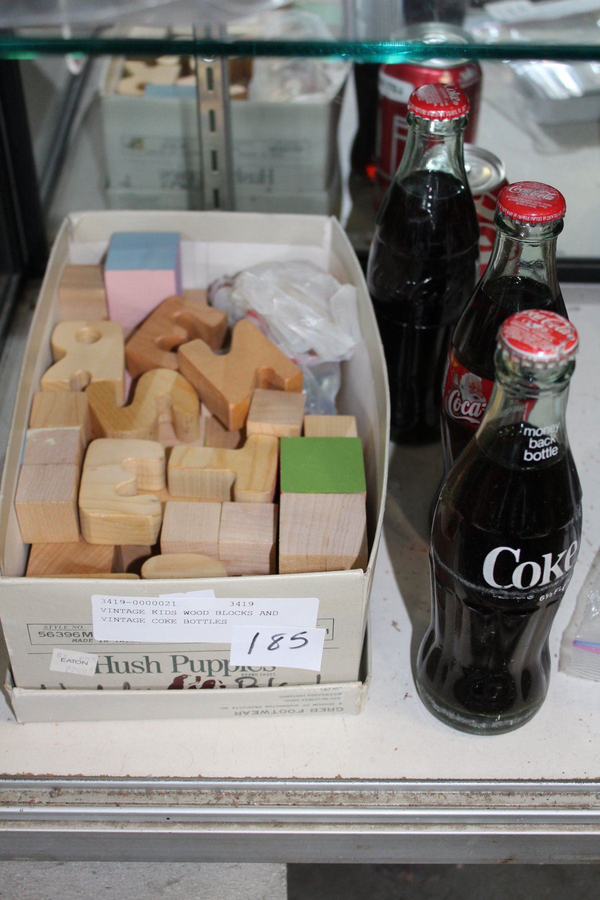 VINTAGE KIDS WOOD BLOCKS AND VINTAGE COKE BOTTLES