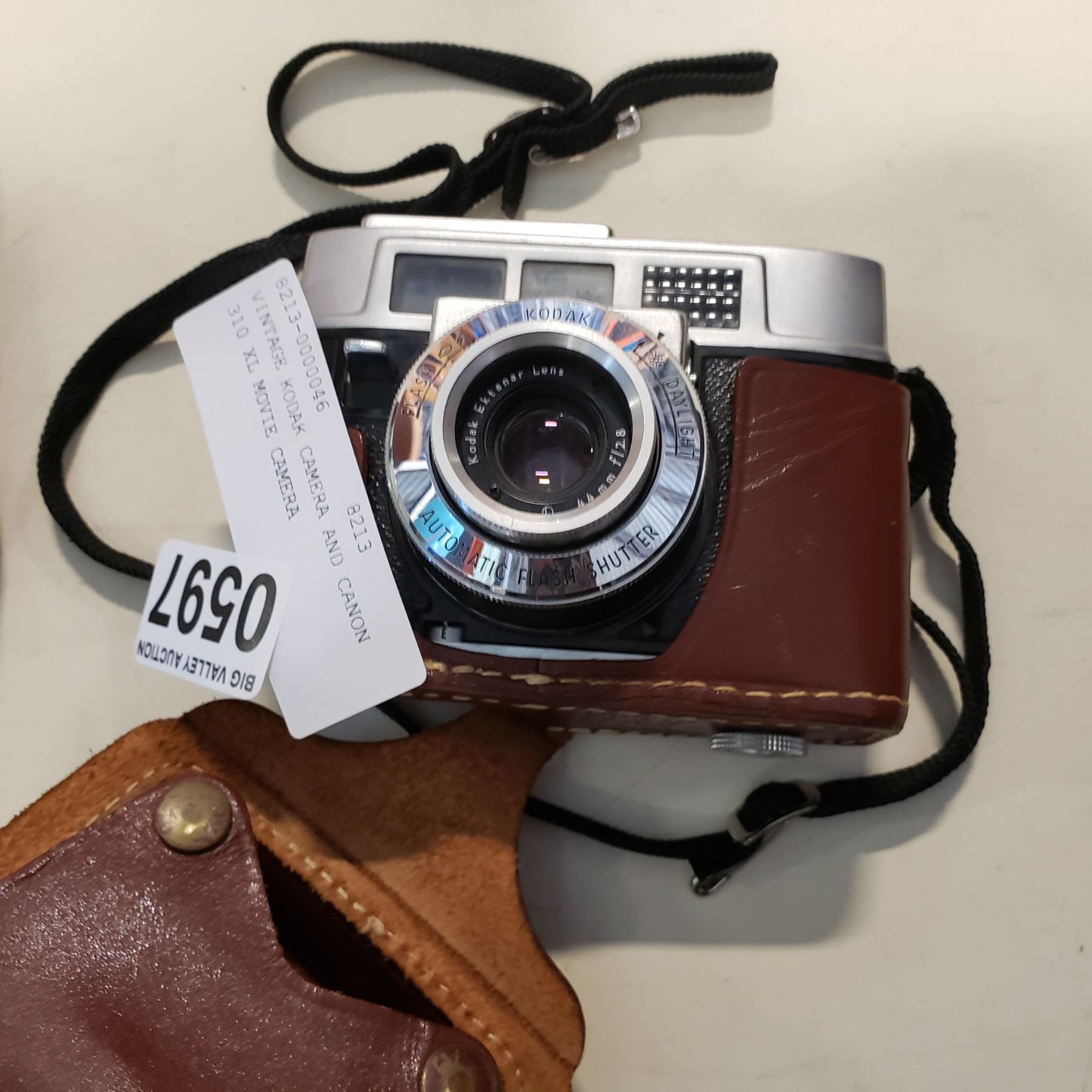 VINTAGE KODAK CAMERA AND CANON 310 XL MOVIE CAMERA