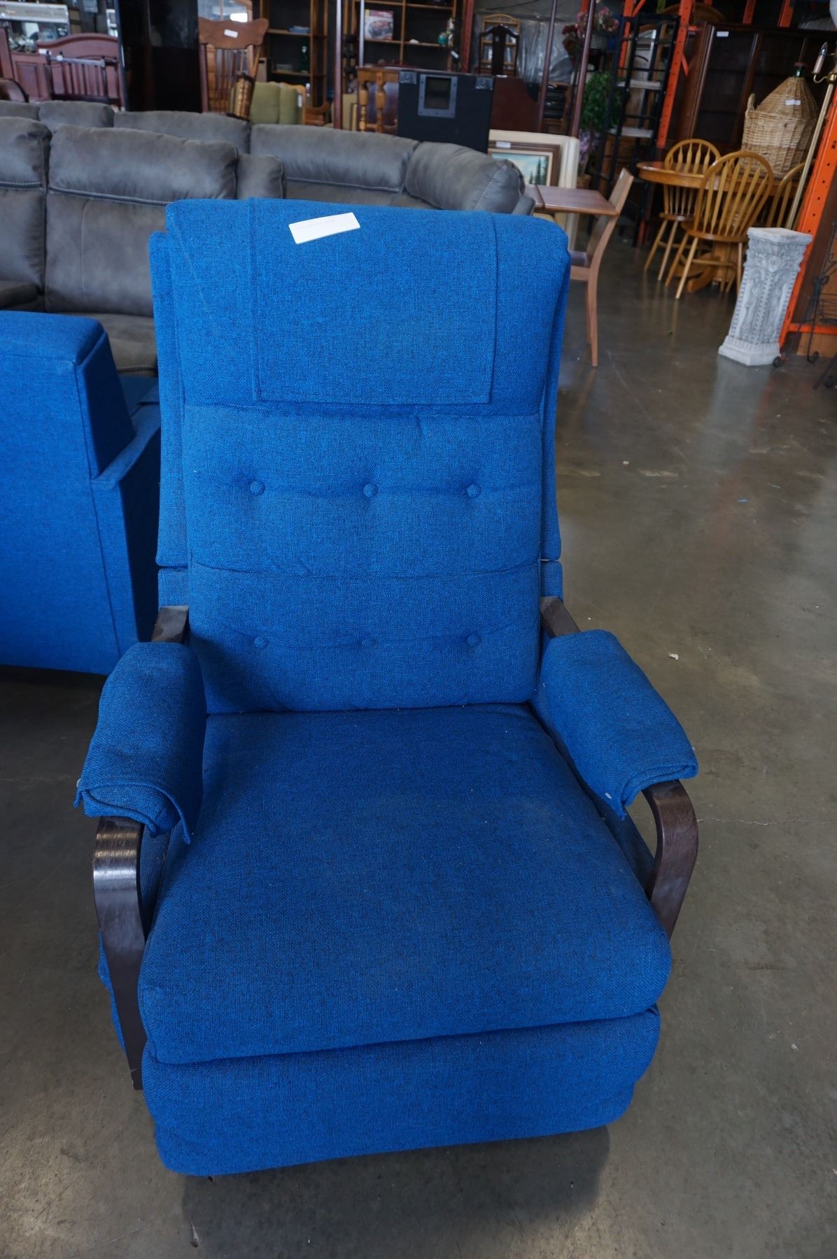 VINTAGE LAZY BOY, MCM UPHOLSTERED BLUE ROCKING RECLINER