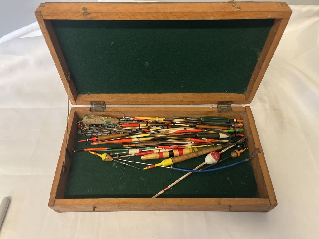 VINTAGE LINED BOX W/ FISH FLOAT COLLECTION